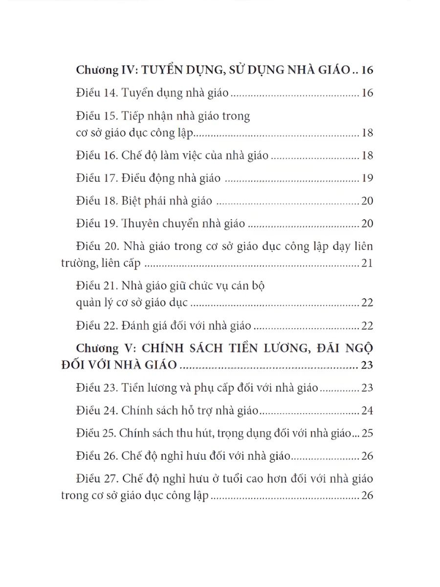 Chính sách tiền lương, đãi ngộ, khen thưởng và bảo vệ quyền lợi cho giáo viên.