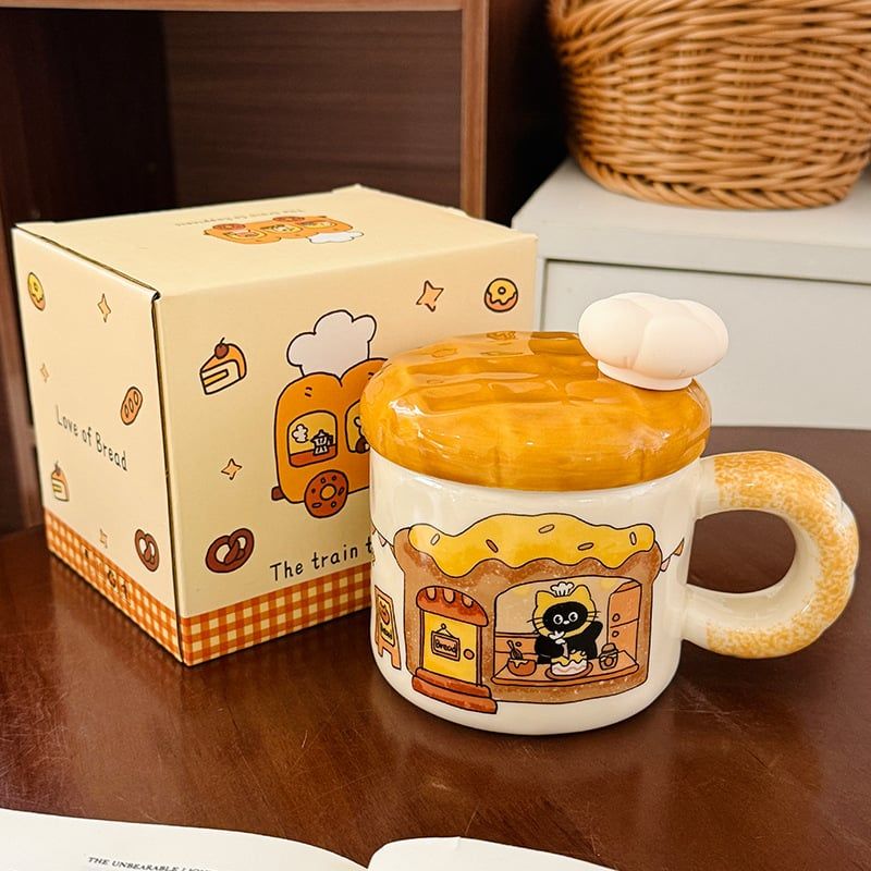 Ly cốc uống nước, uống trà hình mèo đen làm bánh mì đáng yêu