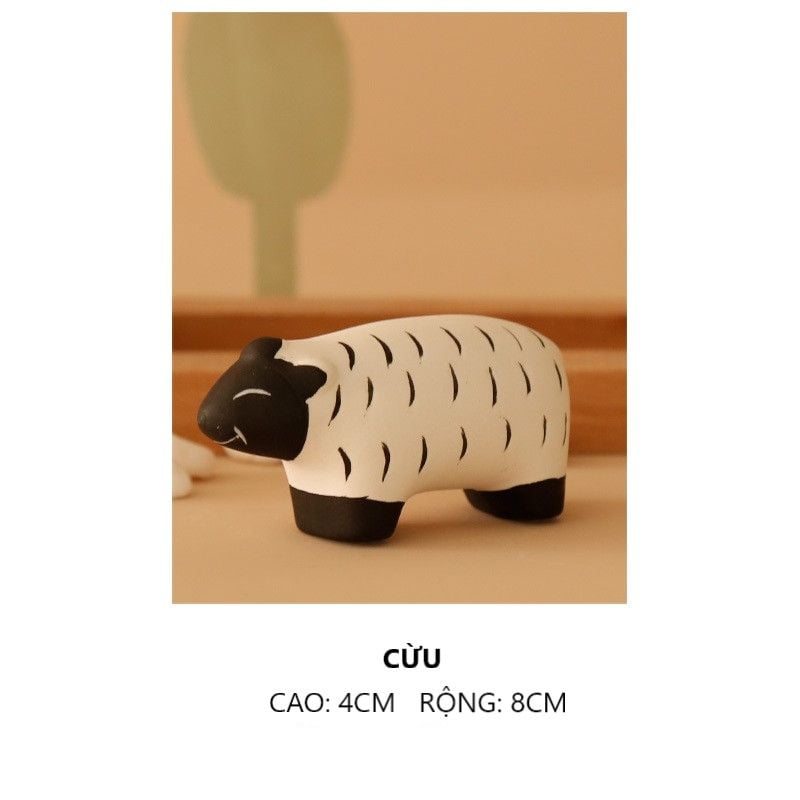 Mô hình trang trí đất sét trắng - động vật trắng đen