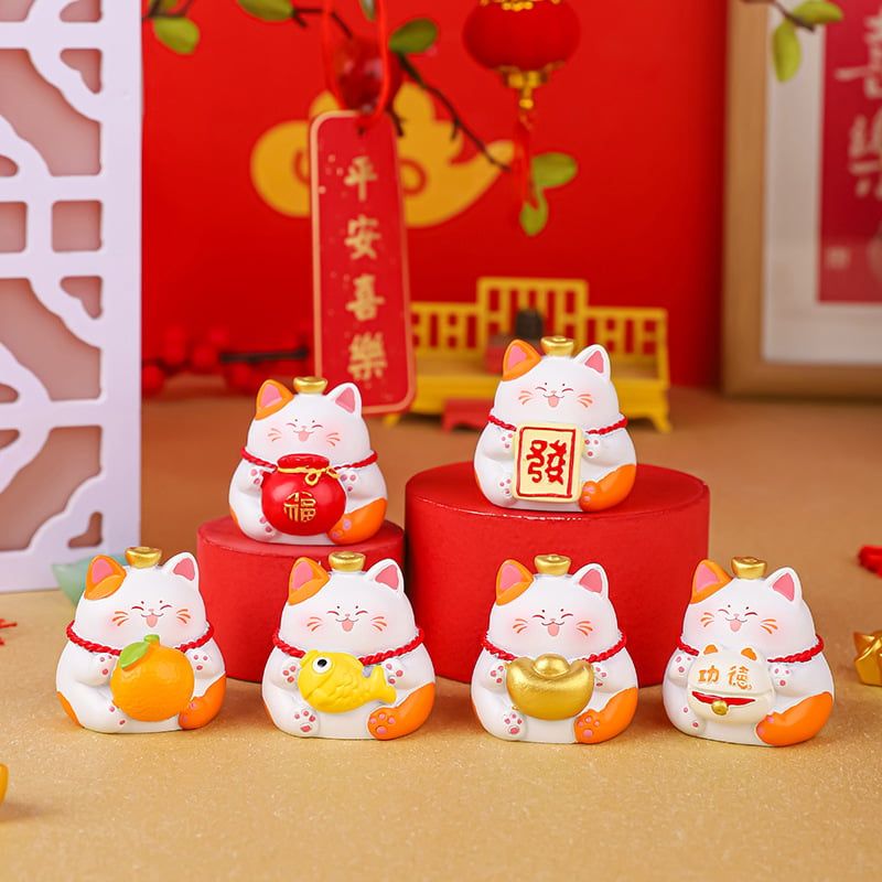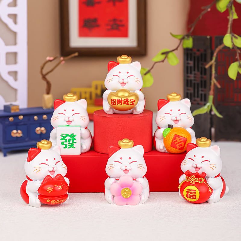 Mô hình trang trí mèo thần tài nhiều hình dáng đáng yêu, ngụ ý may mắn, phát tài, phát lộc