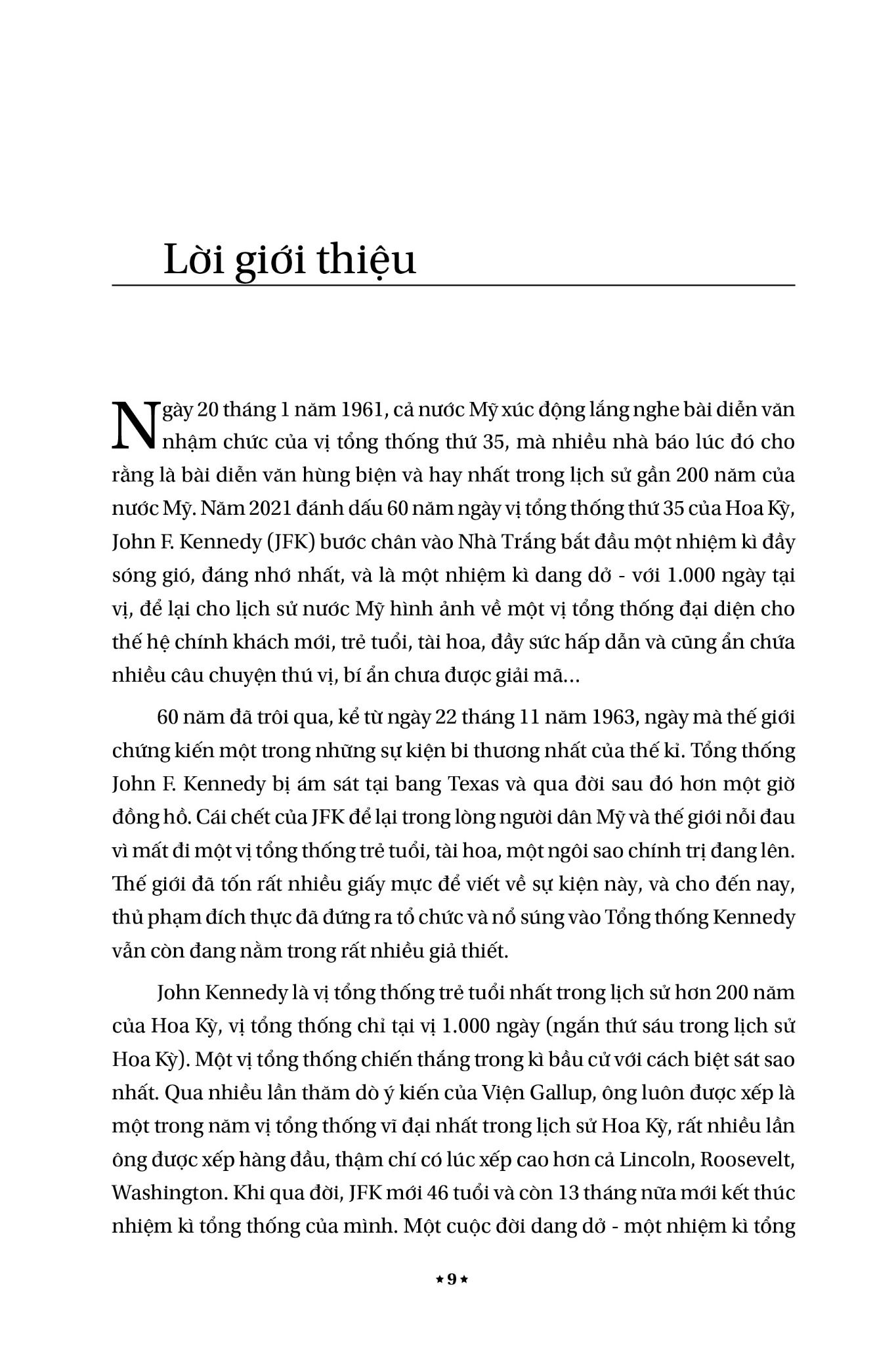 Những trang sách tư liệu về JFK, một trong những tổng thống vĩ đại nhất nước Mỹ, người được cho là luôn không muốn đưa quân vào miền Nam Việt Nam, chắc chắn sẽ làm thỏa mãn những mong đợi của nhiều độc giả và các nhà nghiên cứu về quan hệ ngoại giao Việt Nam - Hoa Kỳ.