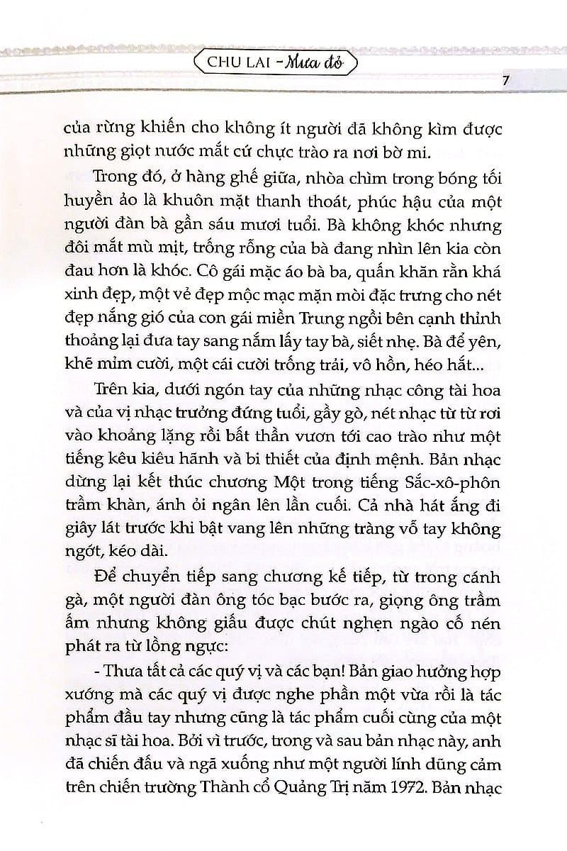 Mưa Đỏ – tiểu thuyết chiến tranh bất tử của nhà văn – đại tá Chu Lai – xoay quanh 81 ngày đêm bảo vệ Thành cổ Quảng Trị mùa hè 1972, nơi bom đạn vùi lấp không chỉ đất đai mà còn thử thách cả ý chí con người. Cuốn sách dựng nên hình ảnh chiến trường đỏ lửa, đồng thời khắc họa sâu sắc nội tâm người lính trẻ – giữa tiếng còi pháo, khói bom, vẫn còn những khát khao bình dị, nhớ thương quê hương, khao khát sống và hy vọng về hòa bình.