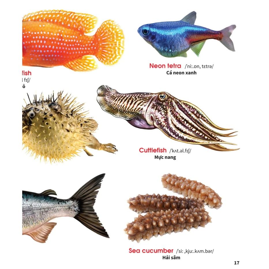 Bé sẽ yêu thích việc học tiếng Anh khi những bài học và hình ảnh minh họa vô cùng lôi cuốn, vì vậy cuốn sách Từ điển bằng hình - Thế giới động vật dưới nước được thiết kế vô cùng sáng tạo, hình ảnh bắt mắt sống động, để truyền tải các bài học một cách sinh động, dễ thương, hấp dẫn... tuyệt vời phải không các bé?