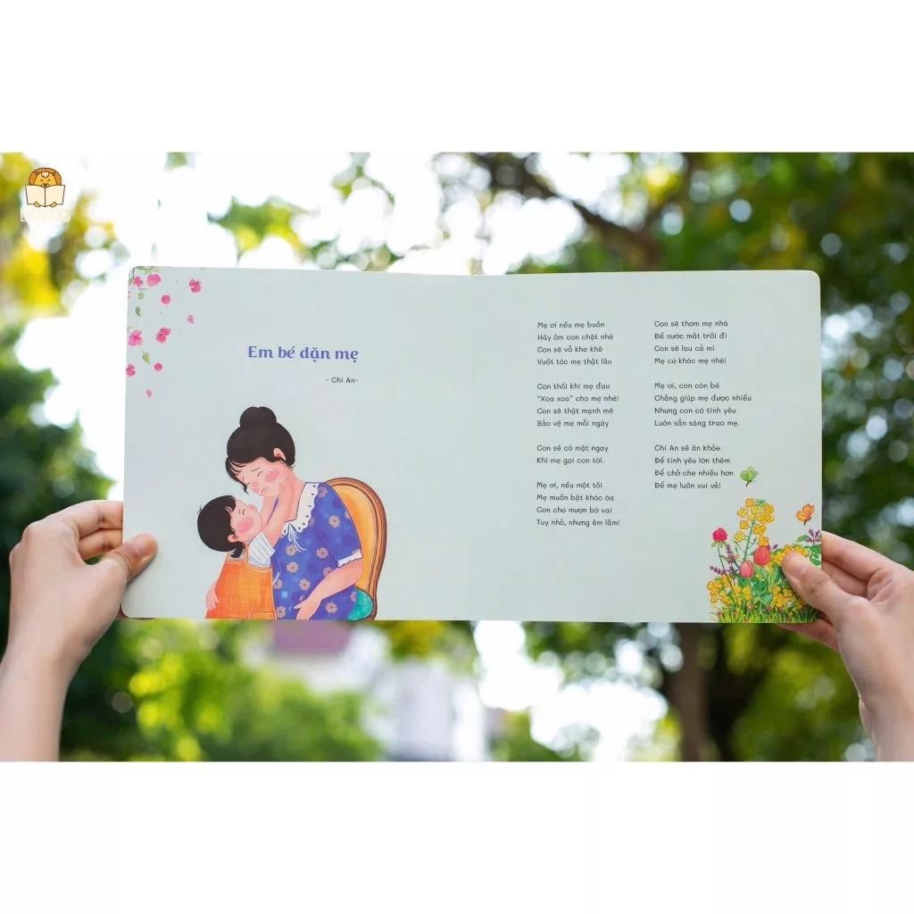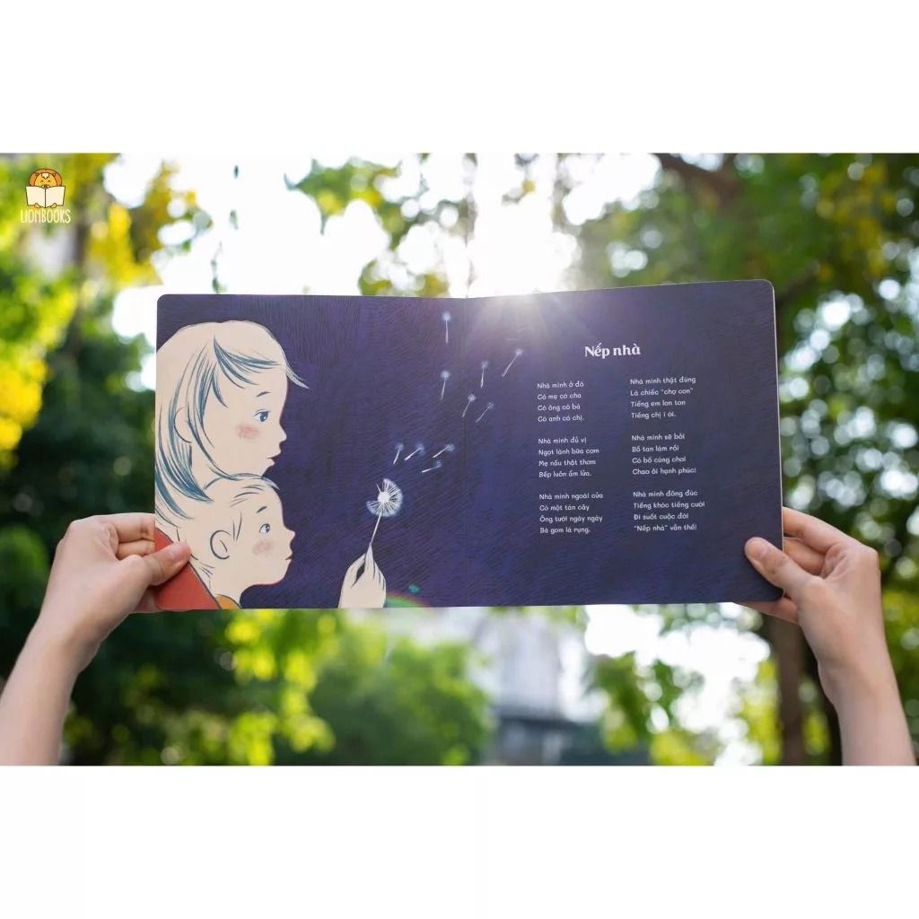 Tập thơ đặc biệt Nếp nhà cho con với 14 bài thơ kết nối dành tặng riêng con, gồm các bài được ba mẹ yêu mến như: Em bé dặn mẹ, Mẹ dặn em bé, Nếp nhà, Con sẽ hát mẹ nghe,... ấn phẩm vừa hướng đến cha mẹ, vừa hướng đến các bạn nhỏ, để cùng nhau thắt chặt kết nối bền bỉ trong gia đình.