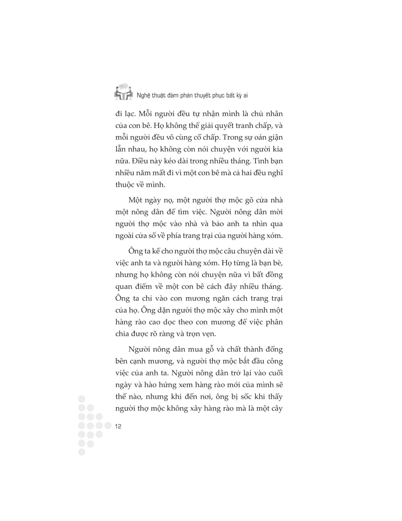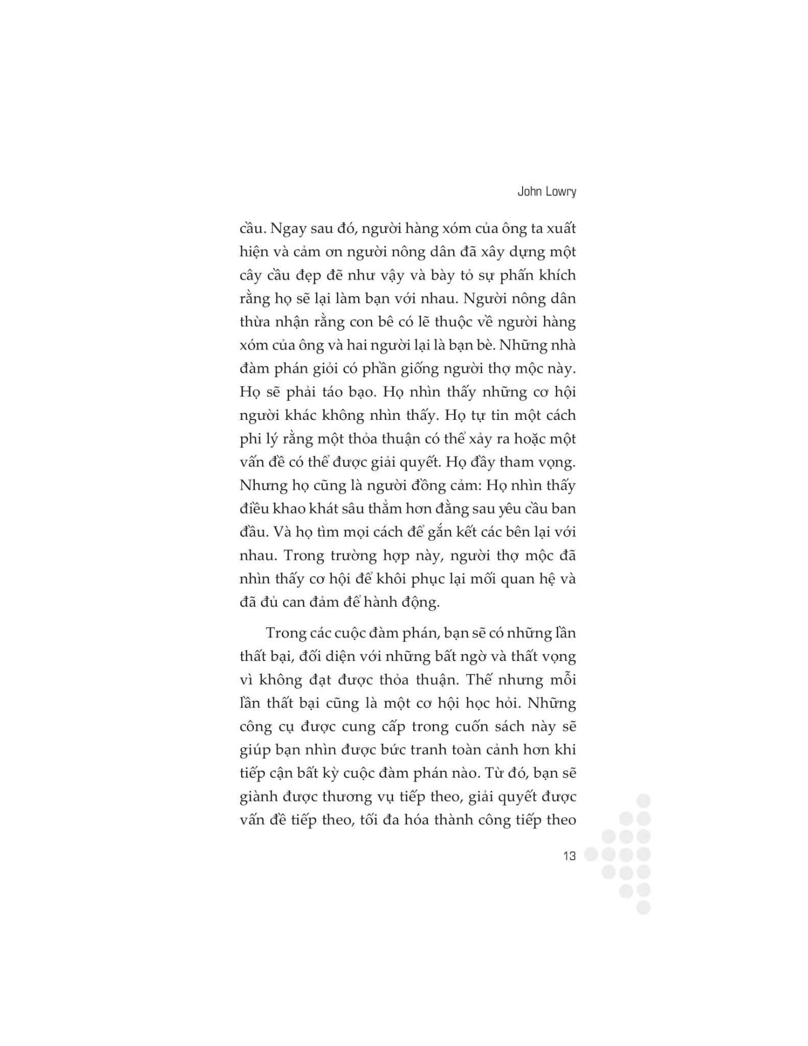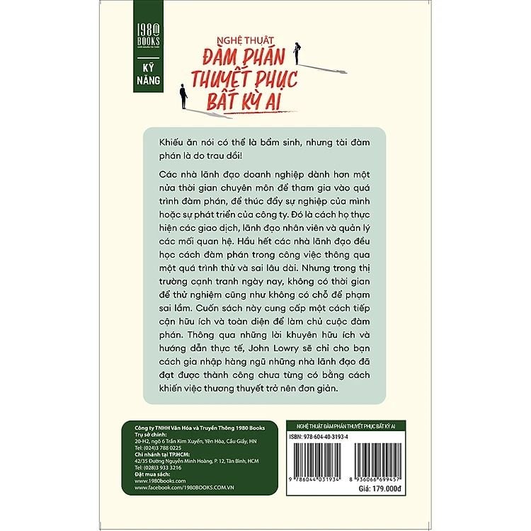 Cuốn sách này cung cấp một cách tiếp cận hữu ích và toàn diện để làm chủ cuộc đàm phán. Thông qua những lời khuyên hữu ích và hướng dẫn thực tế, tác giả John Lowry sẽ chỉ cho bạn cách gia nhập hàng ngũ những nhà lãnh đạo đã đạt được thành công chưa từng có bằng cách khiến việc thương thuyết trở nên đơn giản. Sự cần thiết của đàm phán được thể hiện trong mọi khía cạnh của đời sống, từ công việc đến cuộc sống đời thường. Phát triển kỹ năng đàm phán thuyết phục sẽ giúp bạn có thêm đạt được nhiều thành công, duy trì những mối quan hệ tốt đẹp và nâng cao hiệu quả khi giao tiếp.