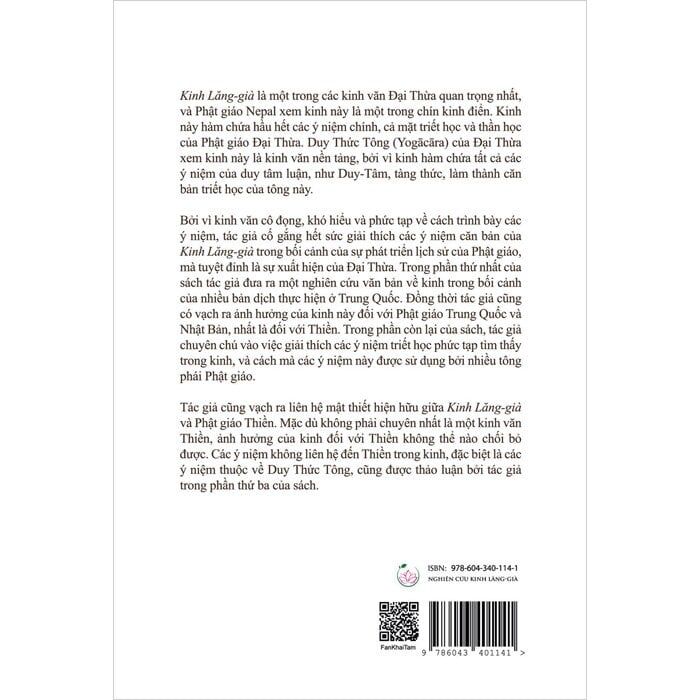 Bởi vì kinh văn cô đọng, khó hiểu và phức tạp về cách trình bày các ý niệm, tác giả cố gắng hết sức giải thích các ý niệm căn bản của Kinh Lăng-già trong bối cảnh của sự phát triển lịch sử của Phật giáo, mà tuyệt đỉnh là sự xuất hiện của Đại Thừa. Trong phần thứ nhất của sách tác giả đưa ra một nghiên cứu văn bản về kinh trong bối cảnh của nhiều bản dịch thực hiện ở Trung Quốc. Đồng thời tác giả cũng có vạch ra ảnh hưởng của kinh này đối với Phật giáo Trung Quốc và Nhật Bản, nhất là đối với Thiền. Trong phần còn lại của sách, tác giả chuyên chú vào việc giải thích các ý niệm triết học phức tạp tìm thấy trong kinh, và cách mà các ý niệm này được sử dụng bởi nhiều tông phái Phật giáo.