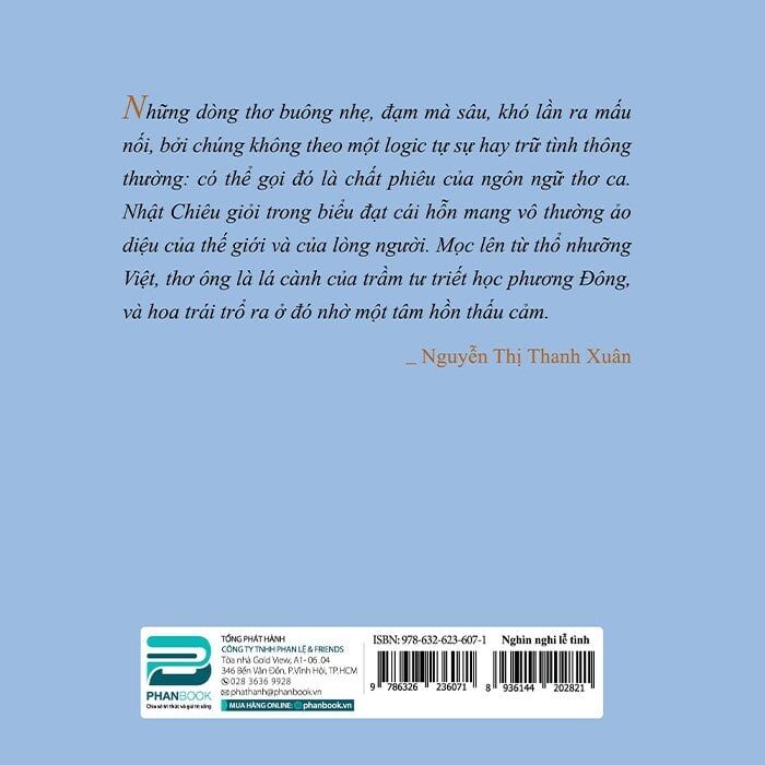 Những dòng thơ buông nhẹ, đạm mà sâu, khó lần ra mấu nối, bởi chúng không theo một logic tự sự hay trữ tình thông thường: có thể gọi đó là chất phiêu của ngôn ngữ thơ ca. Nhật Chiêu giỏi trong biểu đạt cái hỗn mang vô thường ảo diệu của thế giới và của lòng người. Mọc lên từ thổ nhưỡng Việt, thơ ông là lá cành của trầm tư triết học phương Đông, và hoa trái trổ ra ở đó nhờ một tâm hồn thấu cảm.