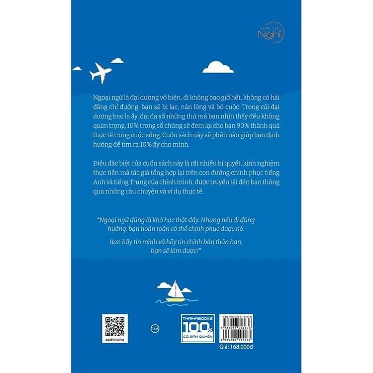 Đây không phải là một cuốn sách dài, nên có thể bạn sẽ đọc hết trong một hai ngày. Nó cũng không dạy bạn ngữ pháp, hay từ vựng gì cả, vì ngoài kia đã có vô vàn cuốn sách viết chuyên sâu về những chủ đề đó. Ngoại ngữ là đại dương vô biên, đi không bao giờ hết, không có hải đăng chỉ đường, bạn sẽ bị lạc lõng, nản lòng, và bỏ cuộc. Trong đại dương bao la ấy, đại đa số những thứ mà bạn nhìn thấy đều không quan trọng, 10% trong số chúng sẽ đem lại cho bạn 90% thành quả thực tế trong cuộc sống. Cuốn sách này sẽ phần nào giúp bạn định hướng để tìm ra 10% ấy cho mình.
