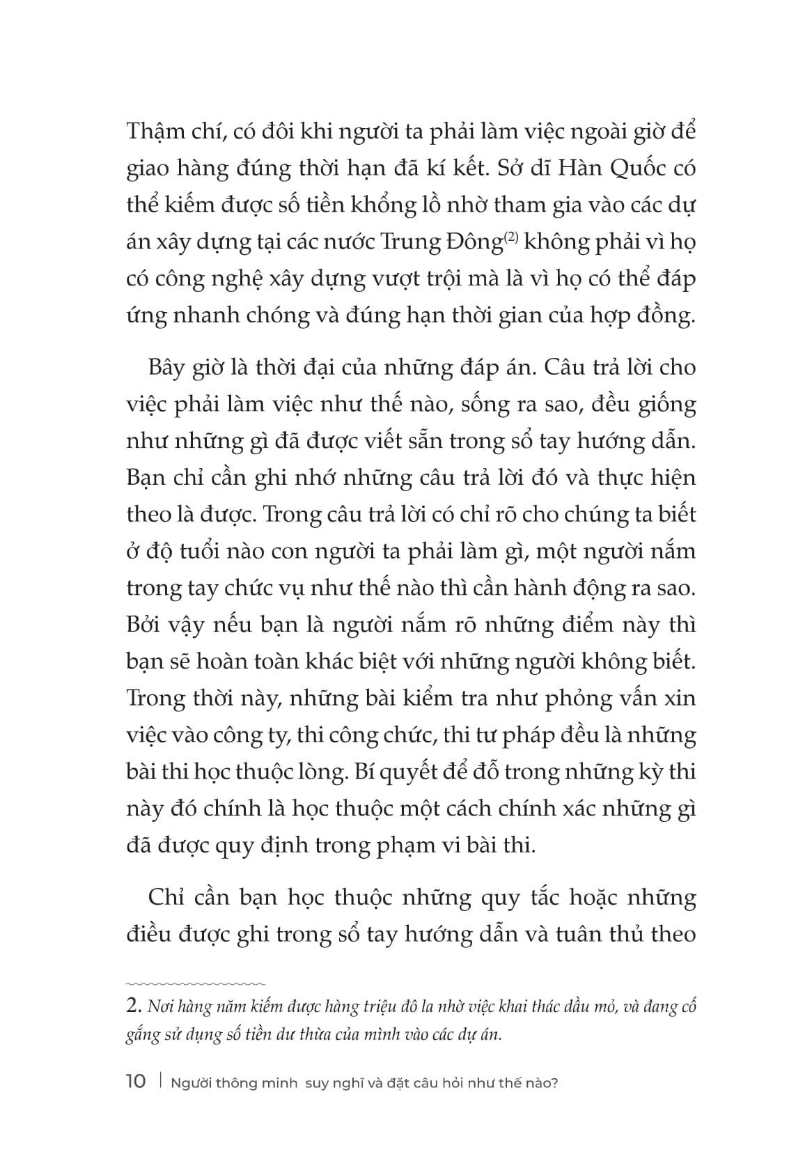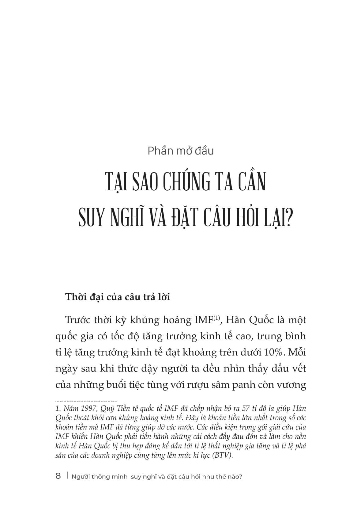 Trong một thế giới đầy ồn ào, người thông minh không phải là người nói nhiều – mà là người biết nghĩ đúng và hỏi trúng. “Người thông minh suy nghĩ và đặt câu hỏi như thế nào” là cuốn sách dành cho những ai không muốn trở nên ồn ào hơn, mà muốn trở nên sắc bén hơn. Không màu mè lý thuyết, không lan man dàn trải, cuốn sách chỉ ra điều cốt lõi: muốn thay đổi cuộc chơi, hãy thay đổi cách bạn suy nghĩ – và cách bạn đặt câu hỏi. Bởi vì trong mọi cuộc họp, mọi mối quan hệ, mọi bước ngoặt của đời người – người đặt ra câu hỏi hay luôn là người nắm quyền chủ động. Và tư duy đúng là bước khởi đầu của mọi đột phá.