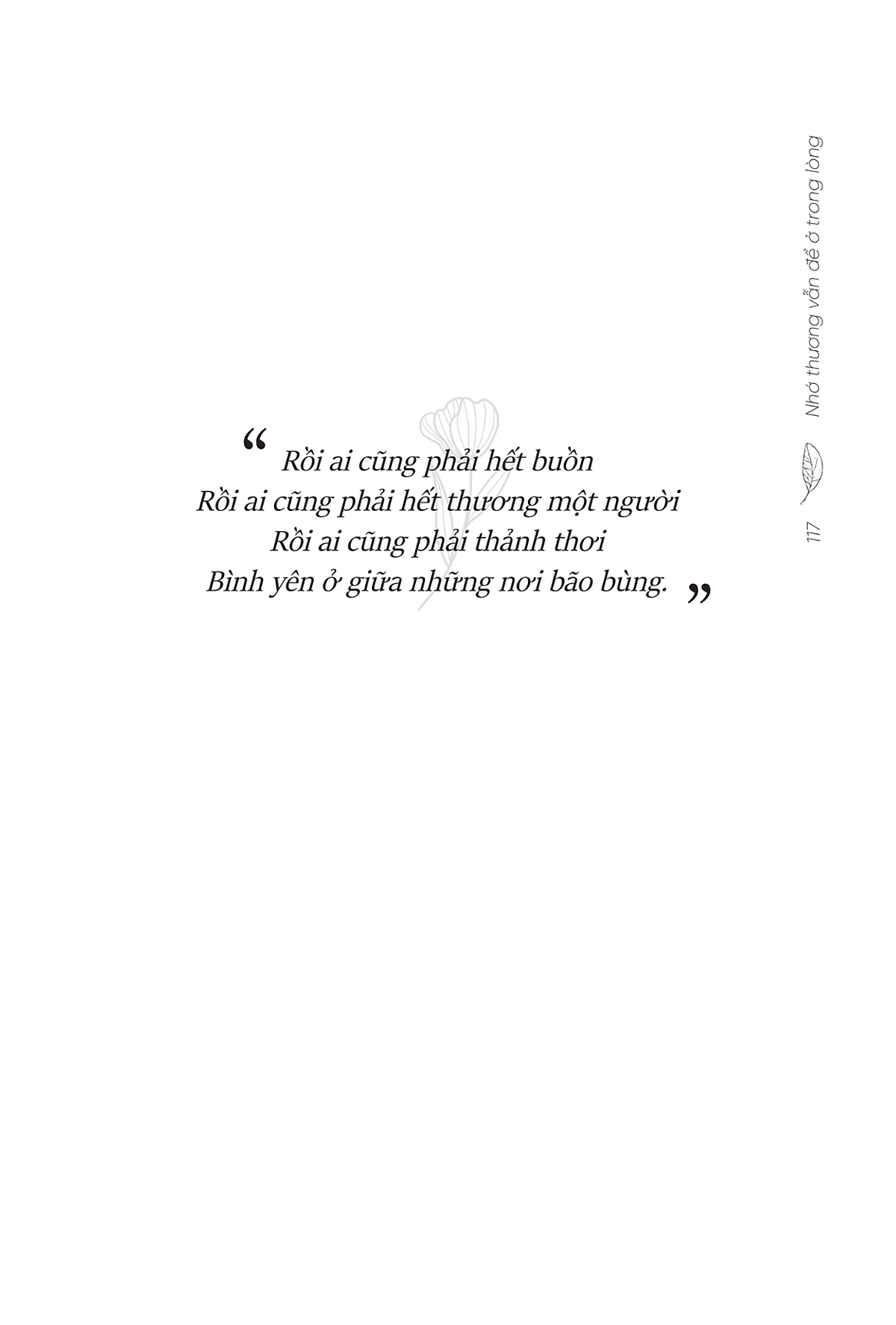 Nếu bạn muốn tìm lại chút bình yên và sống trọn vẹn với cảm xúc bên trong chính mình thì hãy để “Nhớ thương vẫn để ở trong lòng” dịu dàng đến bên bạn, nhé! “Nhớ thương vẫn để ở trong lòng" - Cuốn sách dành tặng những ai lỡ thương một người không thương mình…