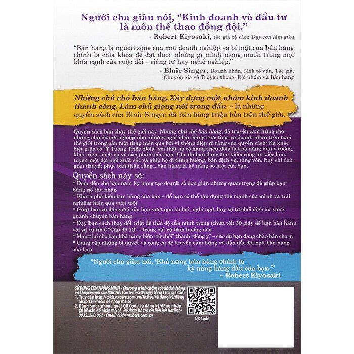 NHỮNG CHÚ CHÓ BÁN HÀNG, đã truyền cảm hứng cho những chủ doanh nghiệp nhỏ, những người bán hàng trực tiếp, và doanh nhân trên toàn thế giới trong gần một thập niên qua bởi vì thông điệp rõ ràng của quyển sách: Sự khác biệt giữa có “Ý Tưởng Triệu Đôla” với thật sự có hàng triệu đôla là khả năng bán ý tưởng, khái niệm, dịch vụ và sản phẩm của bạn. Cho dù bạn đang tìm kiếm công ăn việc làm, tuyển một đội ngũ xuất sắc và giúp họ đi đúng hướng, bán dịch vụ, tăng vốn, hay chỉ đơn giản thuyết phục bản thân rằng… bán hàng là kỹ năng số một của bạn. Cuốn sách này sẽ làm bùng nổ thu nhập mà không cần chiến lược tấn công.