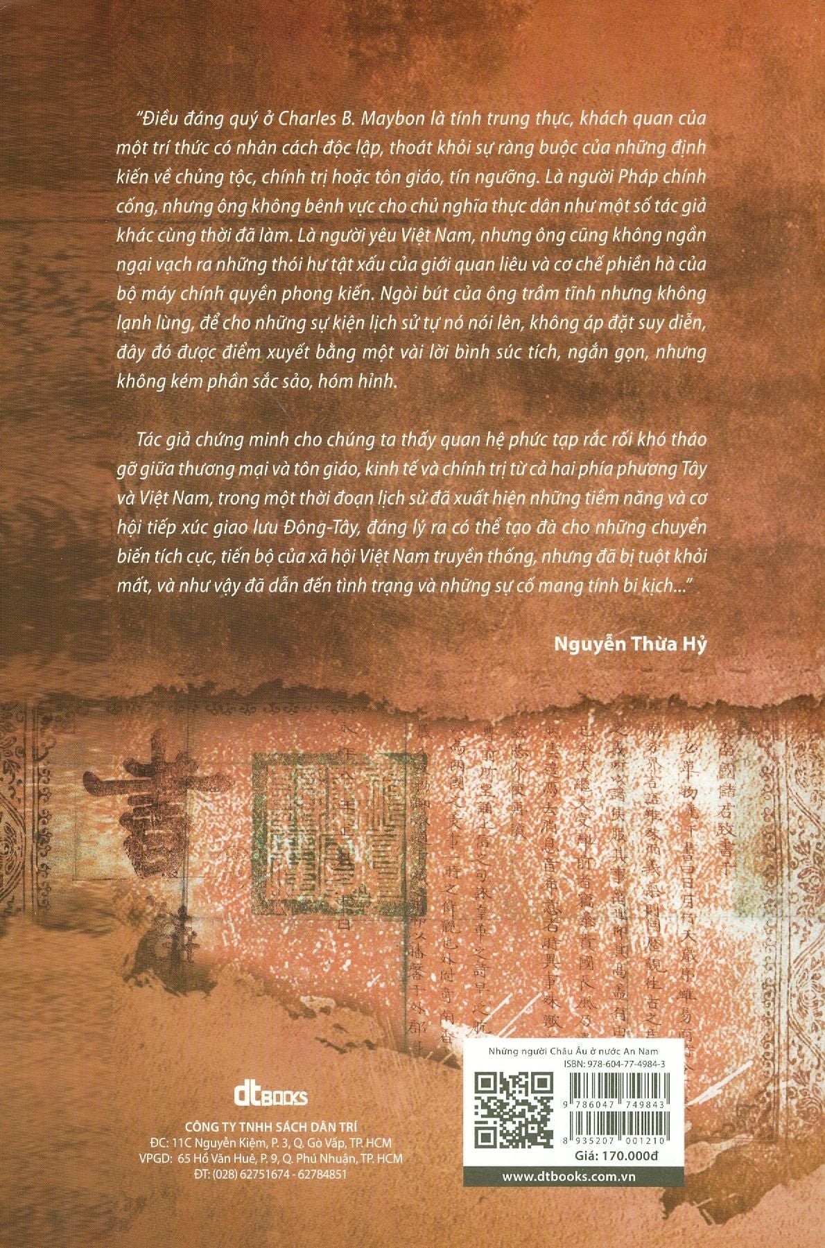 Ch.B. Maybon, tác giả của những công trình được dịch ra ở đây, là một trong những nhà Việt Nam học người Pháp xuất sắc hồi đầu thế kỷ trước. Là giáo sư, tiến sĩ văn khoa, thông thạo nhiều ngoại ngữ (Anh, Đức, Hán, Latinh..)., ông được đánh giá như một gương mặt học giả thực sự uyên bác và nghiêm túc về lịch sử Việt Nam thời kỳ tiền thực dân. Ông là tác giả của nhiều tiểu luận và công trình nghiên cứu nổi tiếng như Une factorerie anglaise au Tonkin au XVII siècle - BEFEO, 1910 (Thương điếm Anh ở Đàng Ngoài thế kỷ XVII); Marchands européens en Cochinchine et au Tonkin - R.I.1916 (Các thương nhân người Âu ở Đàng Trong và Đàng Ngoài); Au sujet de la rivière du Tonkin - 1916 (Về vấn đề sông Đàng Ngoài); Histoire moderne du pays d’Annam - Paris, 1920 (Lịch sử cận đại xứ An Nam)...
