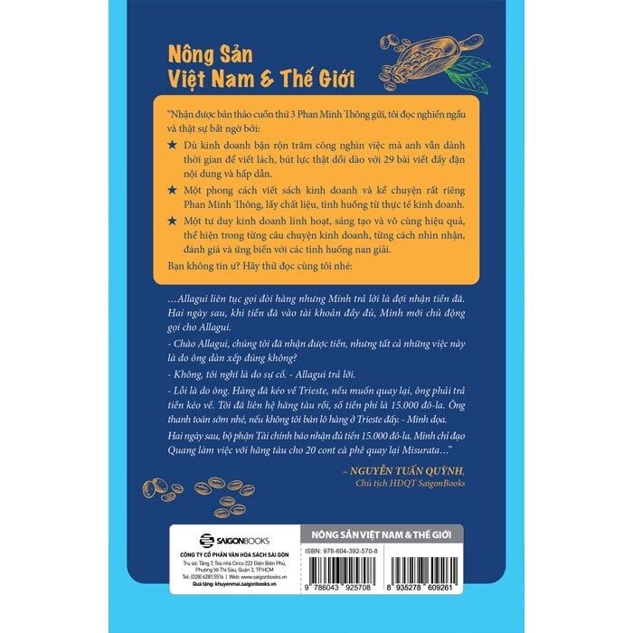 "Nông sản Việt Nam và Thế Giới, Những Câu Chuyện Kinh Doanh" không chỉ là một cuốn sách, mà còn là một chuyến hành trình đầy cảm hứng dành cho những ai đang theo đuổi ước mơ kinh doanh và mang nông sản Việt vươn tầm quốc tế. Qua lối kể chuyện độc đáo và đậm chất người thực, tác giả Phan Minh Thông