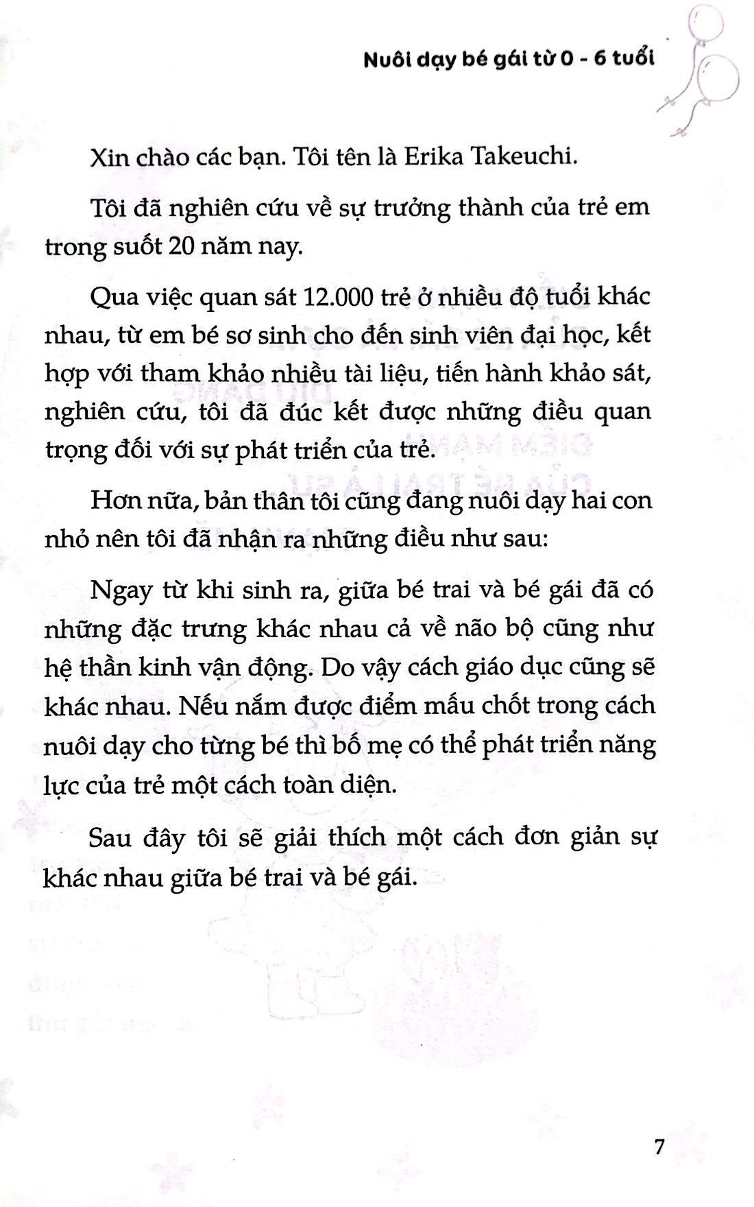 Tác giả của cuốn sách Nuôi dạy bé gái từ 0 – 6 tuổi là người đã có 20 năm nghiên cứu về sự trưởng thành của trẻ em, quan sát 12.000 trẻ ở nhiều độ tuổi khác nhau, từ em bé sơ sinh cho đến sinh viên đại học. Từ kinh nghiệm thực tiễn và nghiên cứu tác giả đã đúc kết được những điều quan trọng đối với sự phát triển của trẻ rằng: