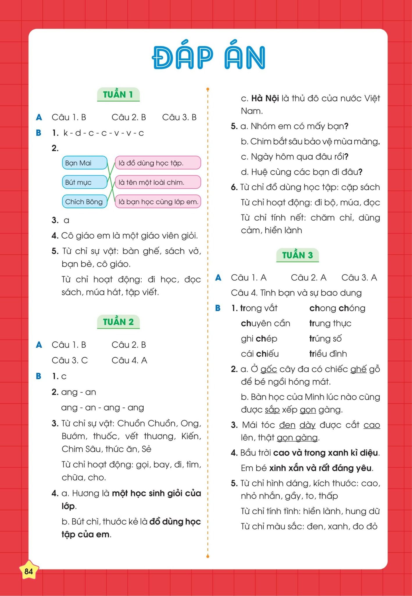 Đặc biệt, sau mỗi kì sẽ có bài ôn tập giữa kì và cuối kì giúp con có tài liệu ôn tập cho các kì kiểm tra. Ngoài ra, phần đáp án phía sau giúp bố mẹ đánh giá năng lực, từ đó có phương pháp ôn luyện phù hợp cho con.