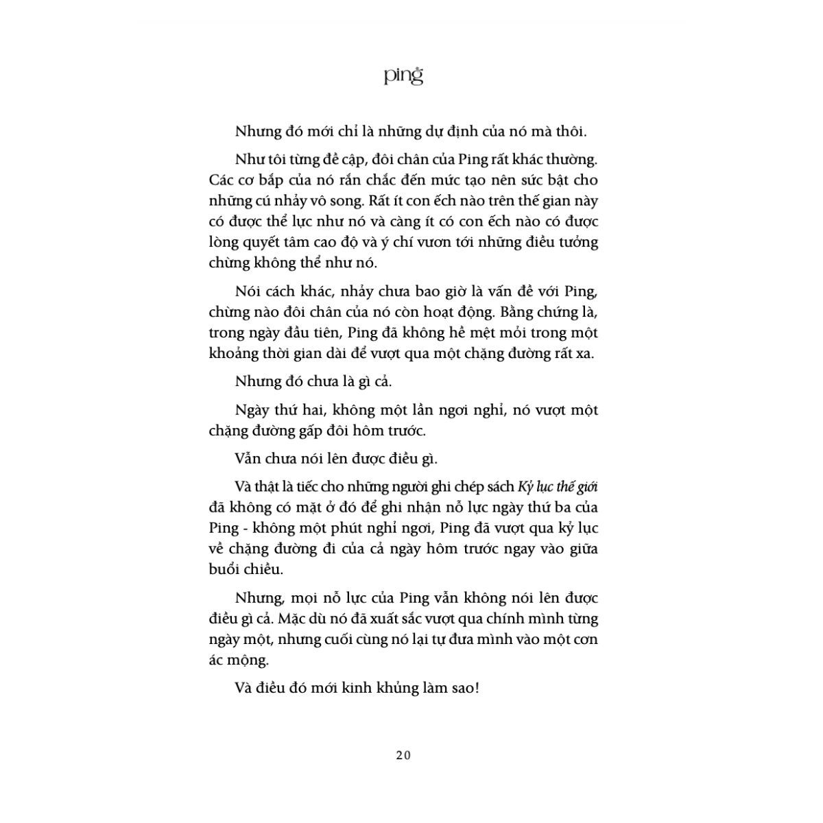 Trong phiên bản mới nhất này, “Ping – Giải cứu Vườn địa đàng” gồm cả ba phần: Vượt khỏi ao tù; Hành trình ra biển lớn và phần mới nhất: Giải cứu Vườn địa đàng, mang đến cho người đọc một câu chuyện hoàn chỉnh về hành trình đầy thú vị của chú ếch Ping.