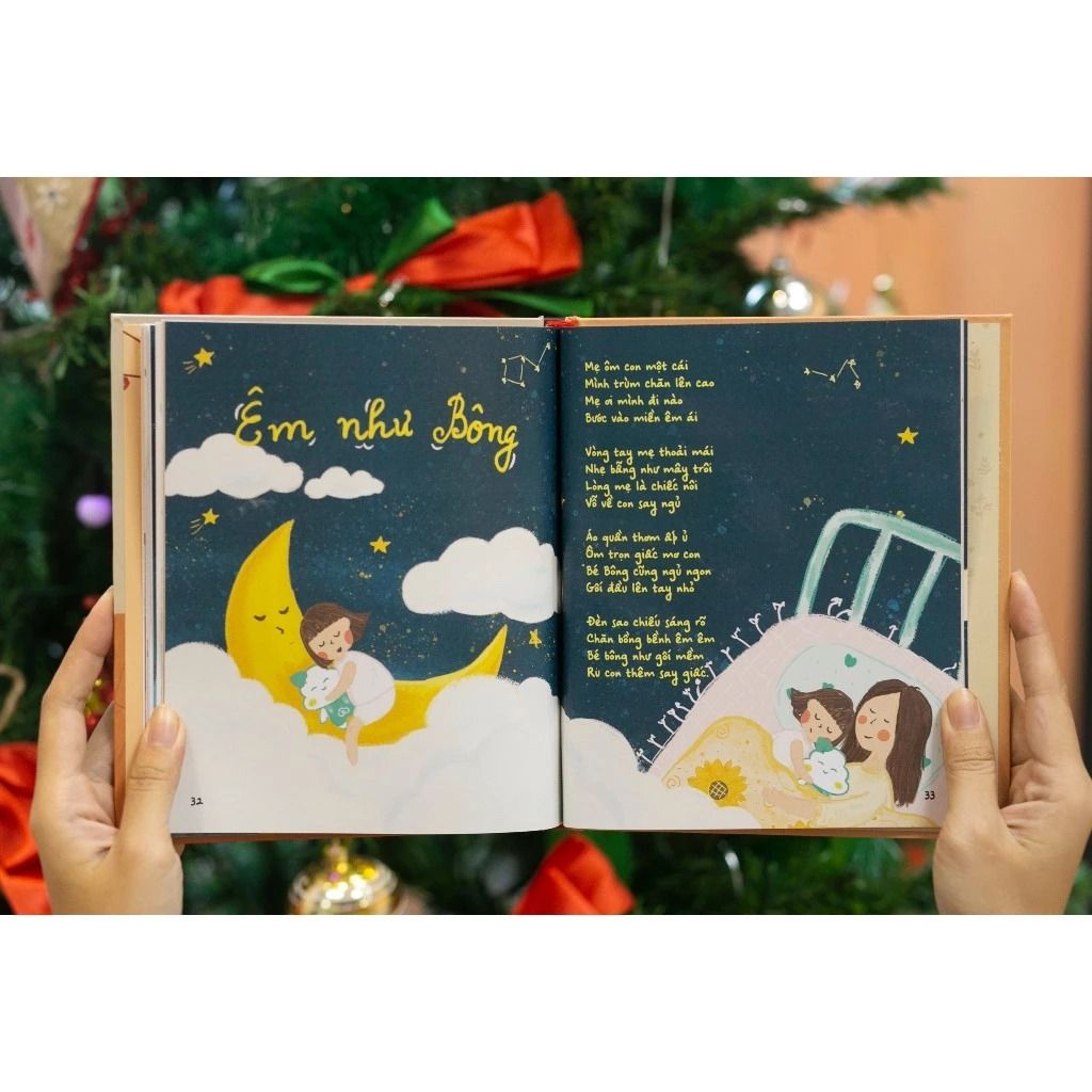 Cuốn sách Thơ ru Đêm Ấm là tuyển tập 16 bài thơ mềm mại và 3 bài nhạc ru êm ái phù hợp để cả nhà đọc và nghe cùng con trước giờ đi ngủ.