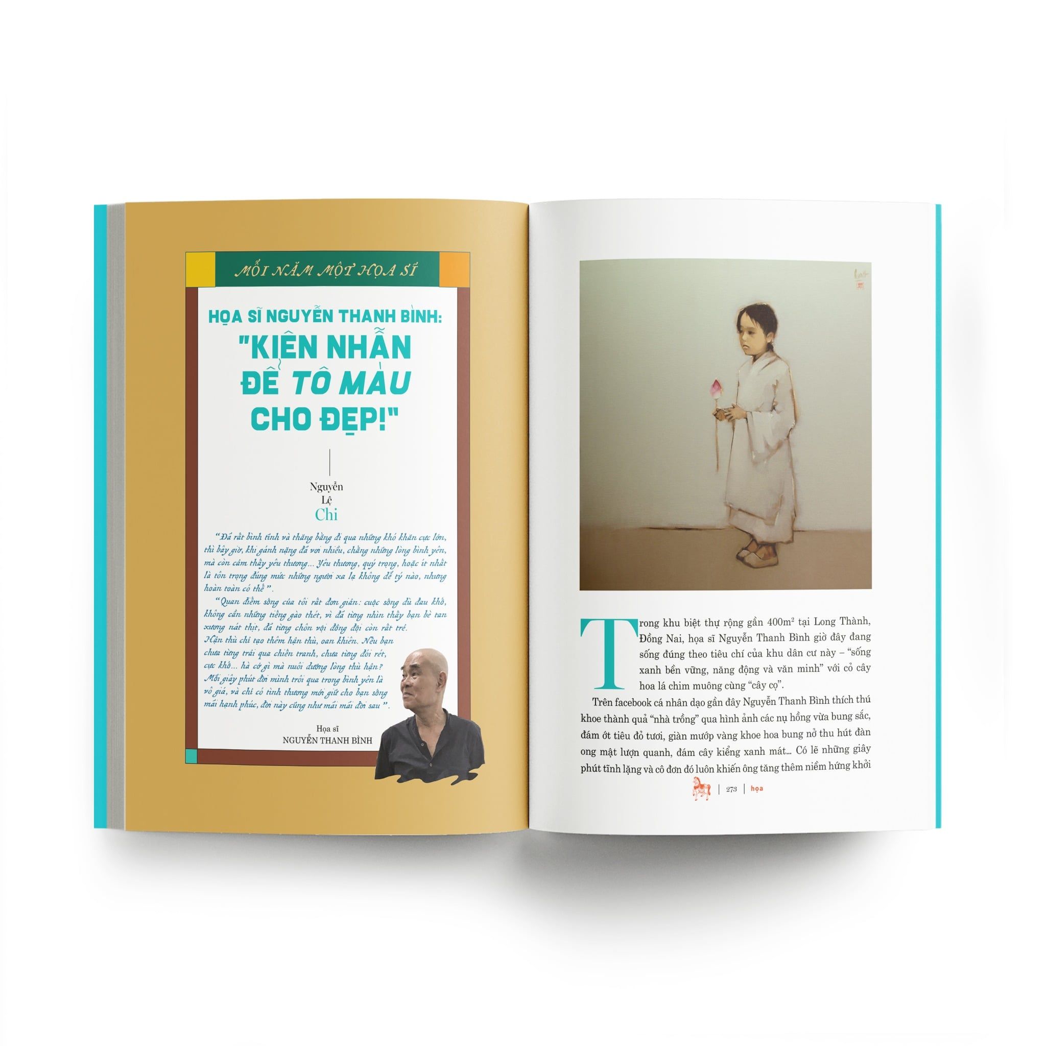 Phần Họa năm nay giới thiệu họa sĩ tuổi Ngọ Nguyễn Thanh Bình qua bài viết của Nguyễn Lệ Chi. Họa sĩ chia sẻ: “Tôi không coi công việc mình làm là gì quá cao siêu, chỉ coi như môn ‘tô màu’. Cần kiên nhẫn để tô cho đẹp”.