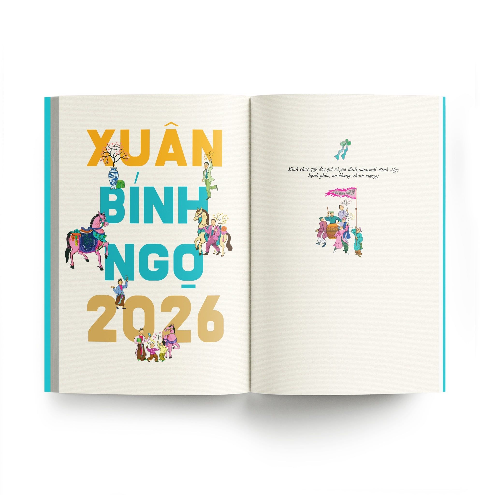 “Sách Tết Bính Ngọ 2026” được in màu bằng công nghệ mực vi sinh, trên giấy Ford 120 gsm, thiết kế đồng bộ toàn bộ hệ Sách Tết đã xuất bản. Mỗi cuốn đều đánh số thứ tự riêng, kèm postcard thiết kế đồng bộ – như một món quà xuân chỉn chu dành cho người sưu tầm và người yêu sách.