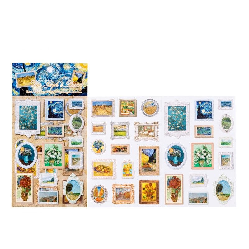 Sticker, hình dán trang trí hình khung tranh danh họa Van Gogh, Monet