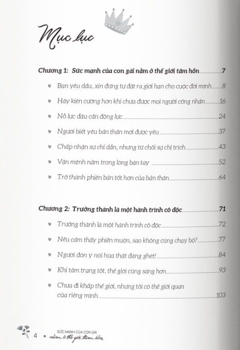 “Sức mạnh của con gái nằm ở thế giới tâm hồn” – Cuốn sách truyền cảm hứng dành cho mọi cô gái. Đây không chỉ là một cuốn sách, mà còn là một tấm gương phản chiếu sự mạnh mẽ, kiên cường của mỗi người phụ nữ trong hành trình khám phá bản thân.