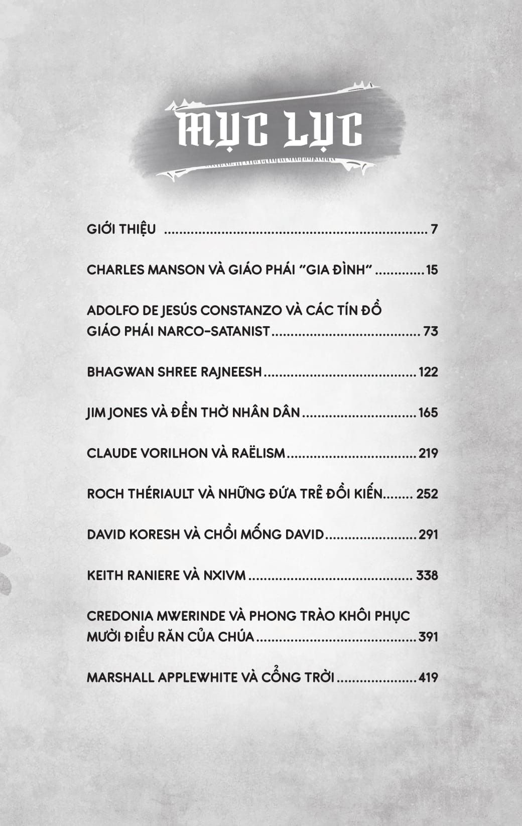 Cuốn sách được xây dựng dựa trên loạt podcast nổi tiếng Cults của Parcast – một trong những podcast dẫn đầu về đề tài giáo phái và tội phạm tâm lý học. Dưới góc nhìn cận tâm lý học và kể chuyện điều tra, Max Cutler và Kevin Conley tái hiện từng chi tiết trong cuộc đời và hành vi của các nhân vật như Charles Manson, Jim Jones, Keith Raniere, David Koresh,… những cái tên khiến cả thế giới rúng động bởi sự tàn nhẫn và khát vọng quyền lực không giới hạn.