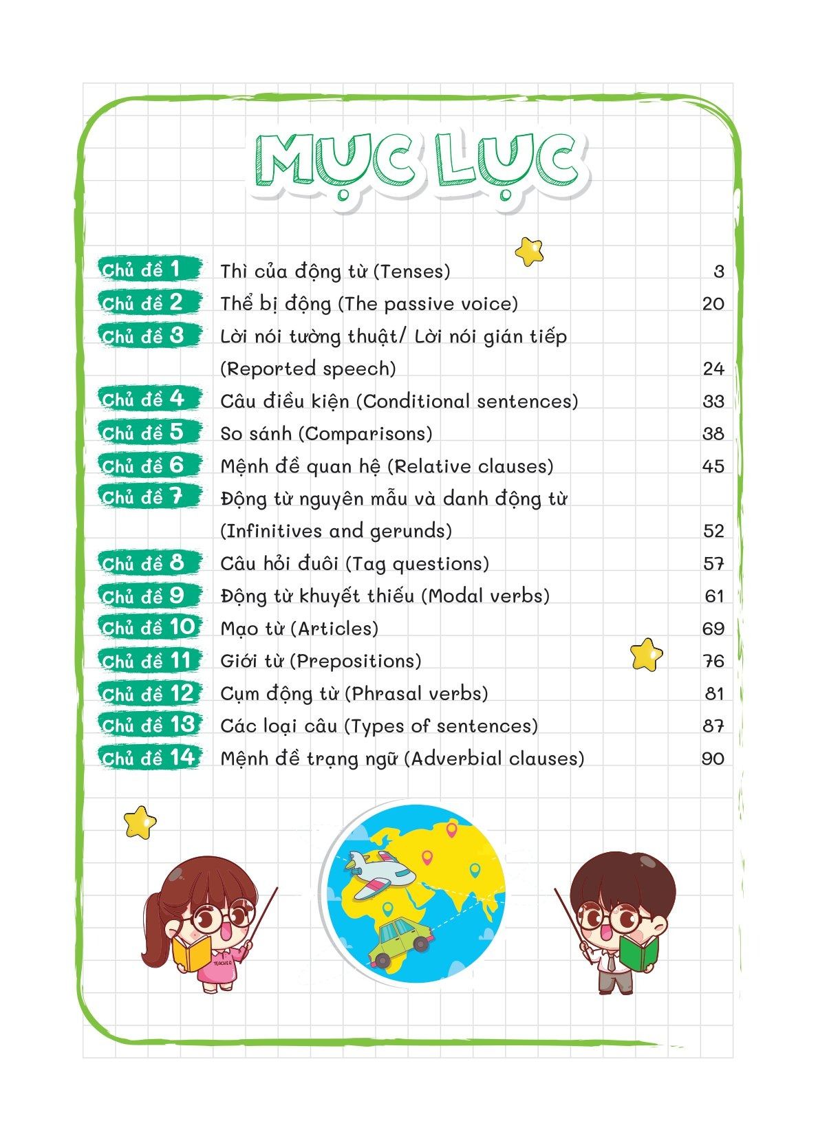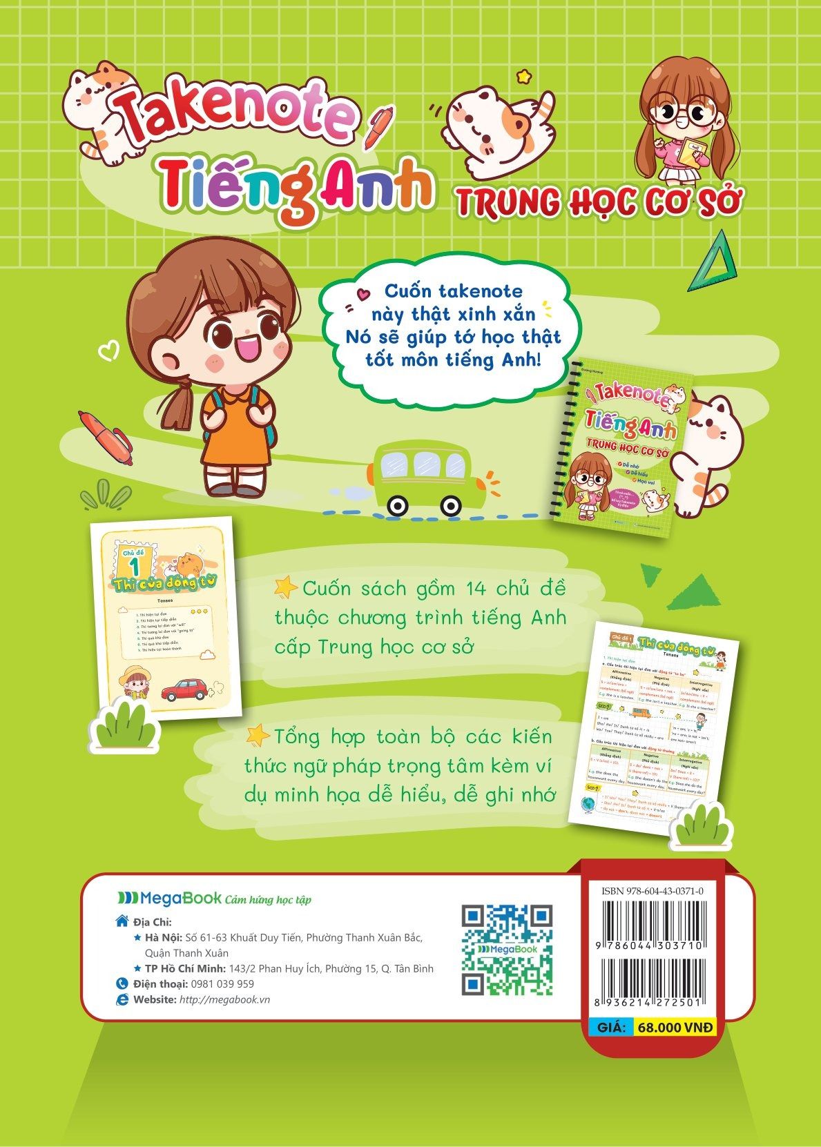 - Cuốn sách hệ thống đầy đủ kiến thức ngữ pháp trọng tâm môn Tiếng Anh bám sát chương trình Tiếng anh THCS theo sách giáo khoa mới nhất của Bộ Giáo Dục