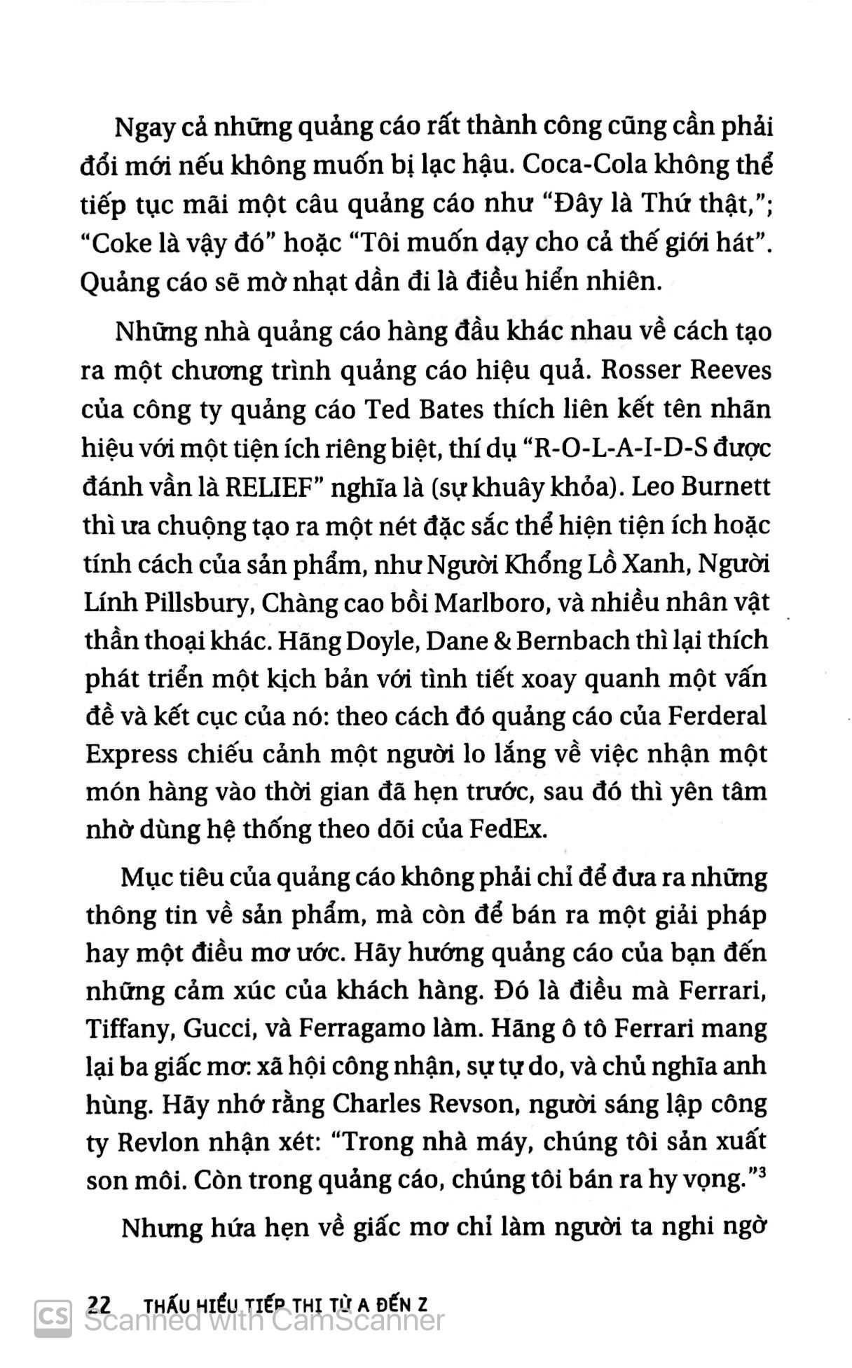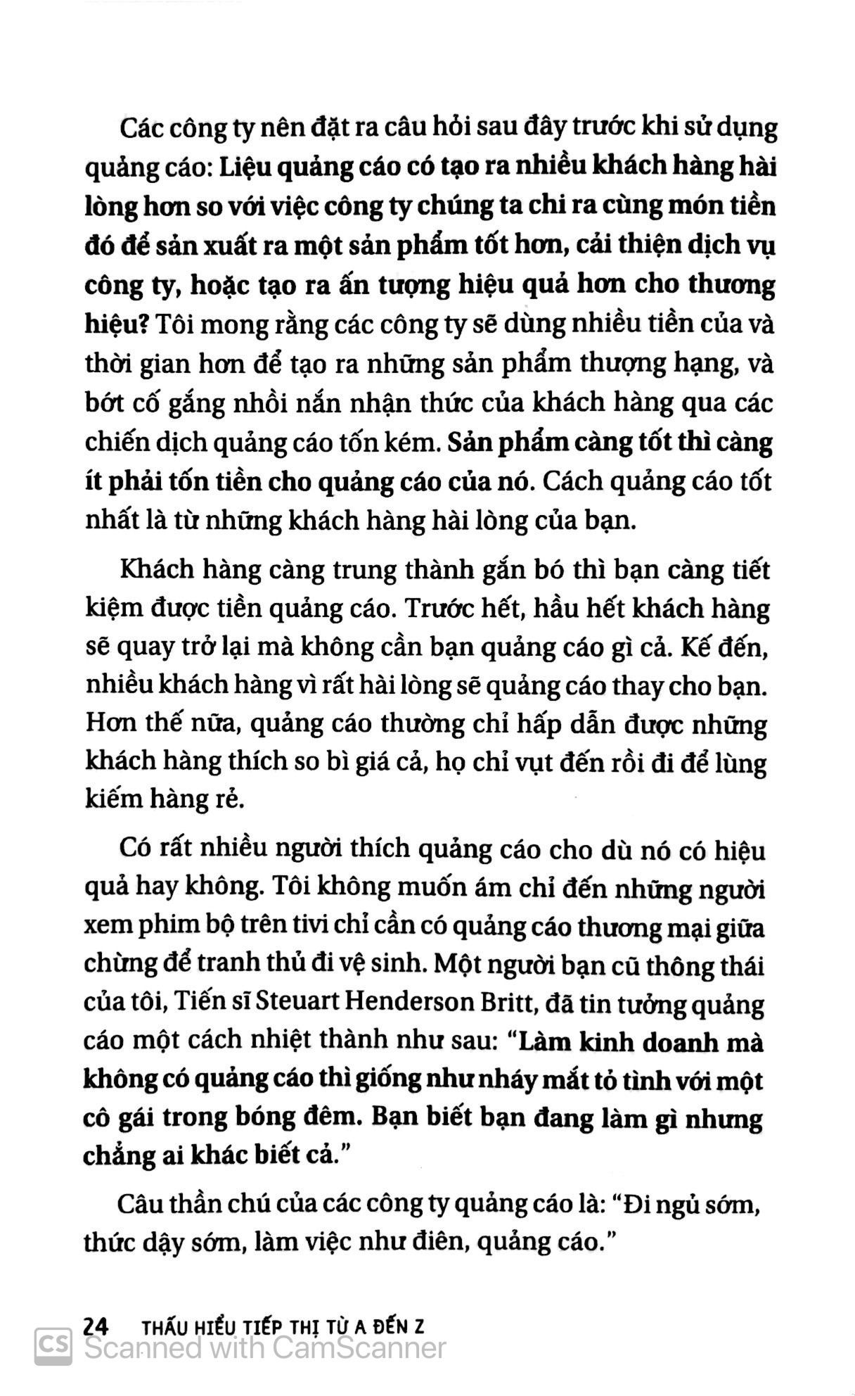Trong thập niên kế tiếp - và sau này nữa - những hiện thực thị trường và người tiêu dùng thay đổi sẽ có nghĩa là sự tái phát minh bản thân việc tiếp thị. Những người làm tiếp thị sẽ không chỉ có mặt trong việc bán bất cứ thứ gì do công ty mình sản xuất ra, mà họ sẽ phải thiết kế những hoạt động tiếp thị của toàn bộ công ty, các chiến dịch quảng cáo, và cả quan hệ công chúng nữa. Cuốn sách Thấu hiểu tiếp thị từ A đến Z sẽ giúp bạn theo kịp thời đại vì nó nêu bật những đổi thay nhanh chóng trong lĩnh vực này, mang đến một cái nhìn mới về môn khoa học quen thuộc này, và giải thích nhanh những khái niệm căn bản. Cuối cùng, thành công sẽ đến với ai dẫn đầu cuộc chạy đua vào tương lai của tiếp thị - đây chính là cuốn cẩm nang giúp bạn bứt ra dẫn đầu trong cuộc đua đó.