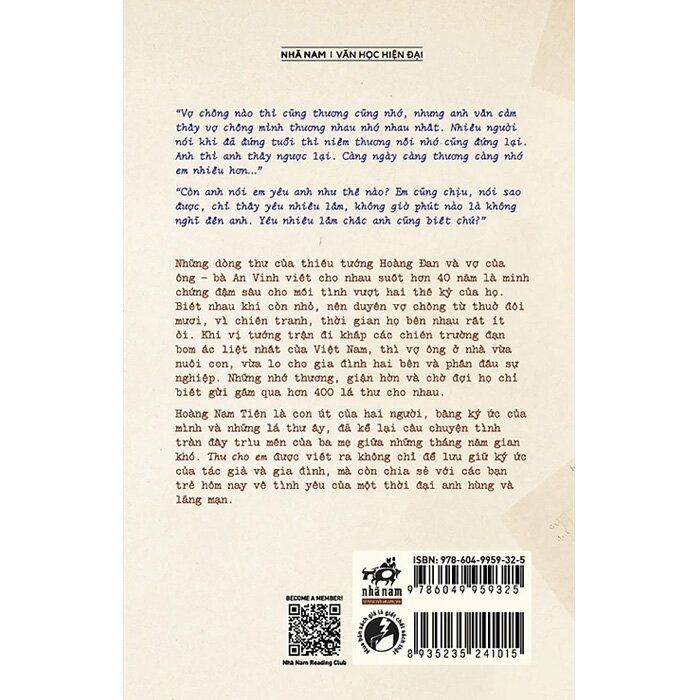 Hoàng Nam Tiến đã viết thật xúc động về câu chuyện tình yêu tràn đầy trìu mến của ba mẹ, thông qua những lá thư ấy, không chỉ để lưu giữ ký ức riêng của gia đình, mà còn kể lại cho người đọc hôm nay về một thời đại vô cùng anh hùng và tuyệt vời lãng mạn.