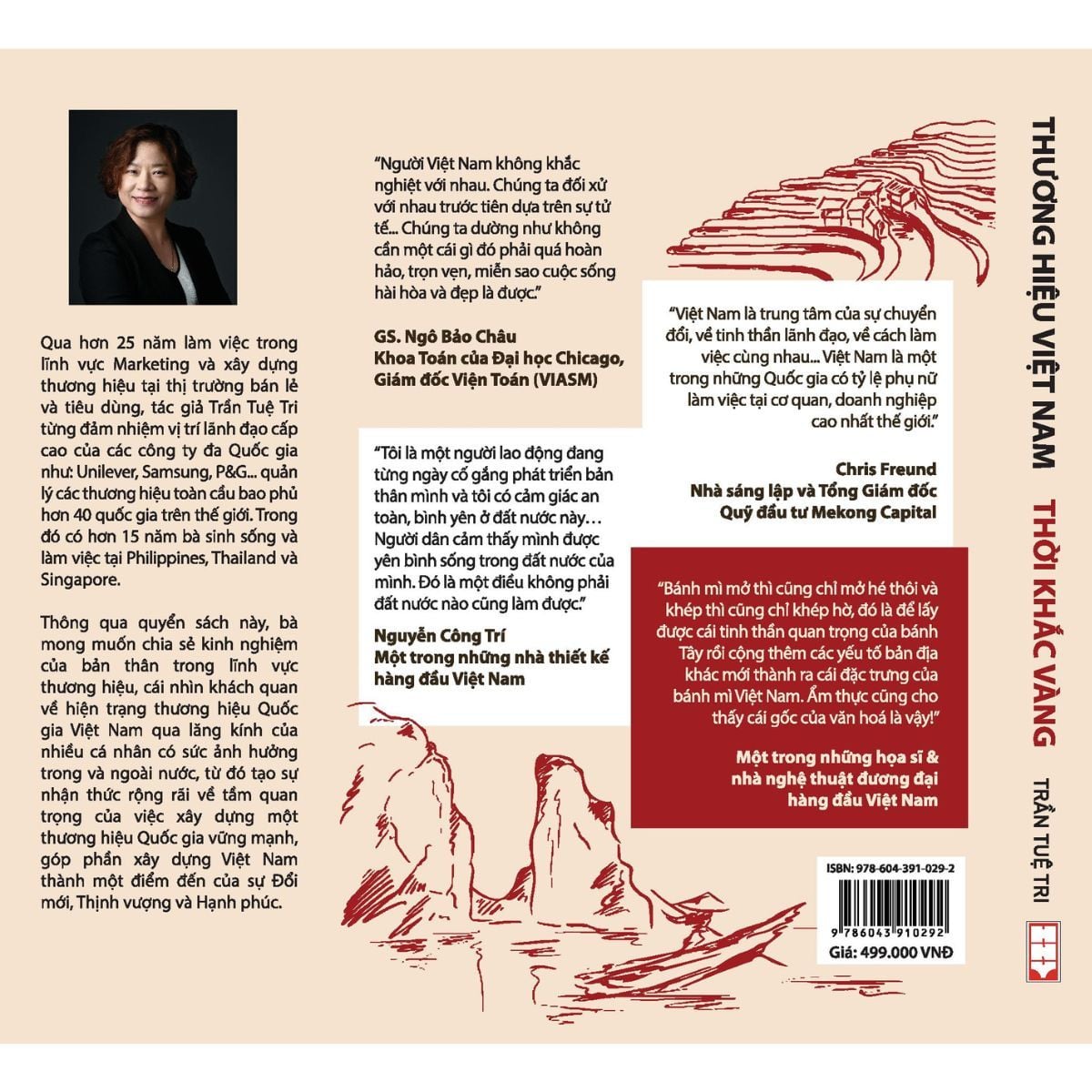 Cuốn sách “Thương hiệu Việt Nam - thời khắc vàng” là tác phẩm được nghiên cứu và ấp ủ trong hơn 3 năm của bà Trần Tuệ Tri - chuyên gia có 25 năm làm việc trong lĩnh vực marketing và xây dựng thương hiệu tại thị trường bán lẻ và tiêu dùng. Bà đã quản lý các thương hiệu toàn cầu bao phủ hơn 40 quốc gia trên thế giới, và đảm nhiệm vị trí lãnh đạo cấp cao của các công ty đa quốc gia như: Unilever, Samsung, P&G…