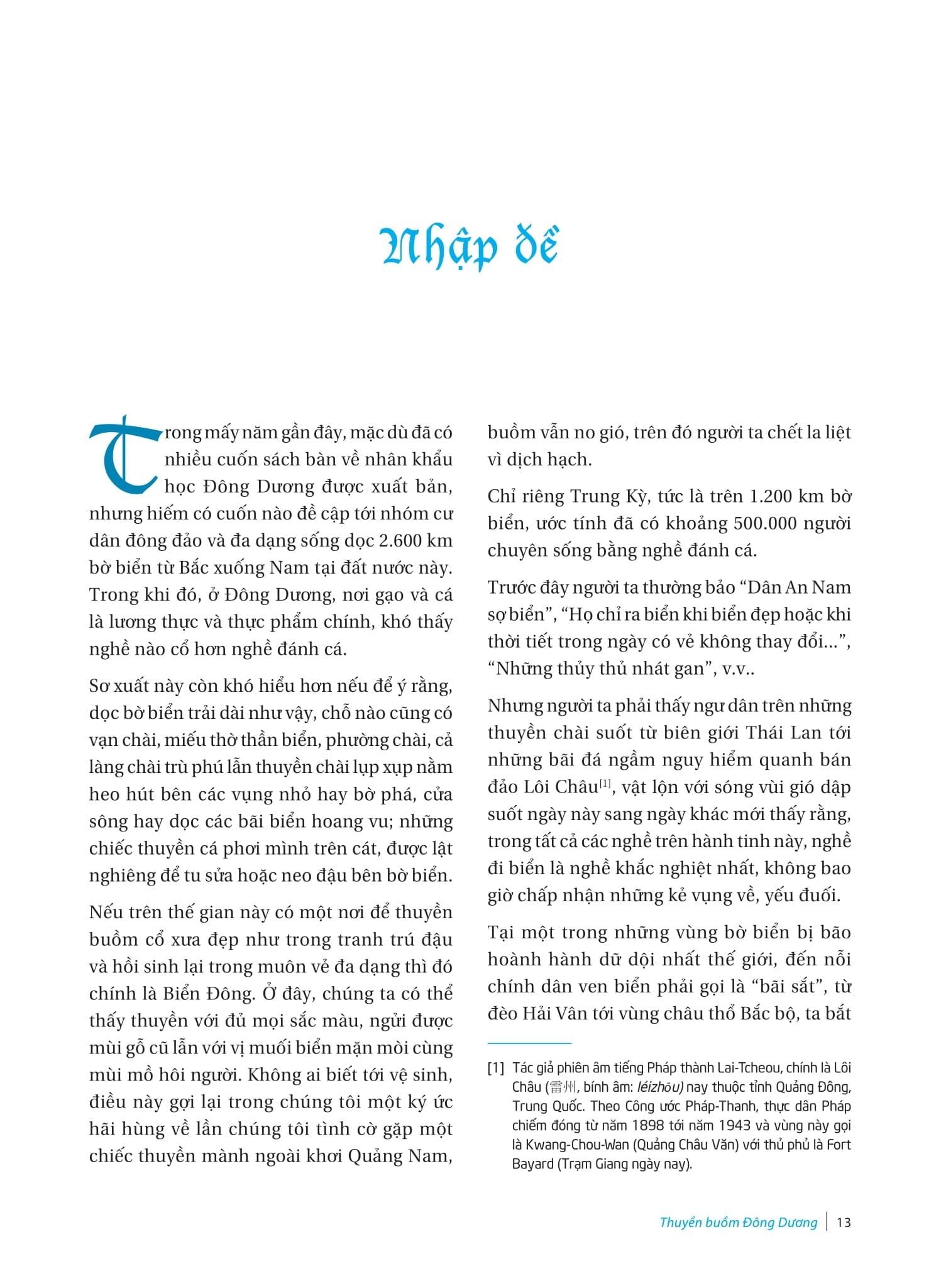 Voiliers d’Indochine là một cuốn sách kỹ thuật. Một mặt, cuốn sách cung cấp cho ta một số bài viết và minh họa rất trung thực, sáng tỏ giúp cho các độc giả phổ thông có thể hiểu được về các loại thuyền cổ xưa của đất nước có bờ biển dài, đa dạng và ấn tượng này. Mặt khác, cuốn sách còn mô tả vô cùng chi tiết về cách treo buồm và các trang thiết bị trên thuyền ngoài mong đợi và sự hiểu biết của một số độc giả bình thường.