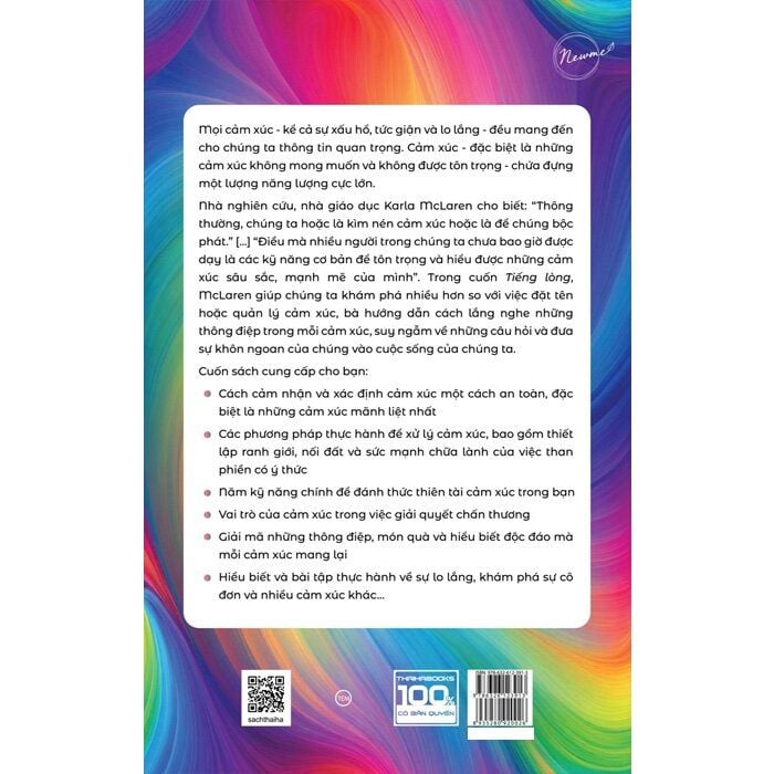 Nhà nghiên cứu, nhà giáo dục Karla McLaren cho biết: “Thông thường, chúng ta hoặc là kìm nén cảm xúc hoặc để chúng bộc phát.” […] “Điều mà nhiều người trong chúng ta chưa bao giờ được dạy là các kỹ năng cơ bản để tôn trọng và hiểu được những cảm xúc sâu sắc, mạnh mẽ của mình”. Trong cuốn Tiếng lòng, McLaren giúp chúng ta khám phá nhiều hơn so với việc đặt tên hoặc quản lý cảm xúc, bà hướng dẫn cách lắng nghe những thông điệp trong mỗi cảm xúc, suy ngẫm về những câu hỏi và đưa sự khôn ngoan của chúng vào cuộc sống của chúng ta.