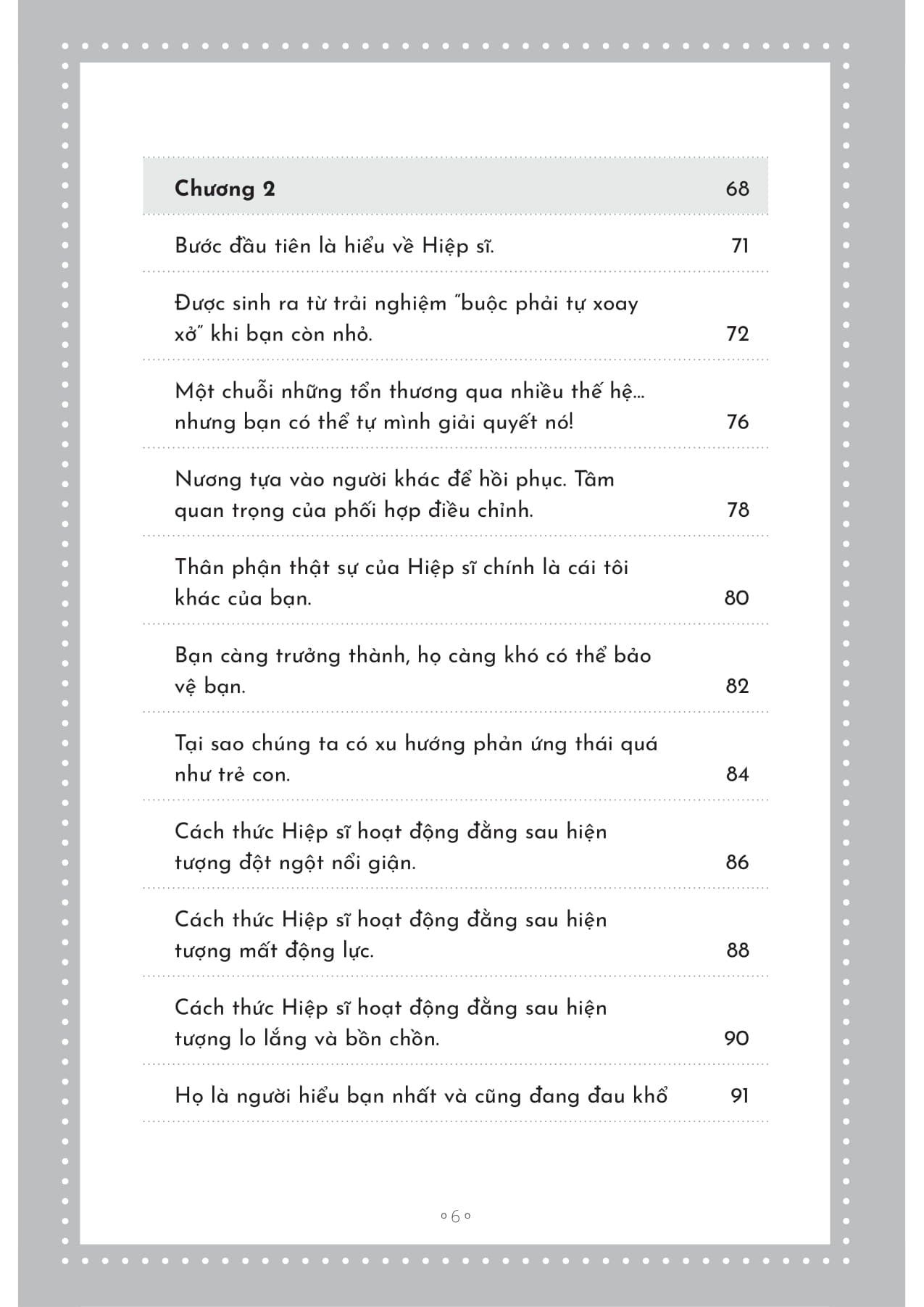 Hiệp sĩ không phải là kẻ thù mà là phần bản ngã cần được bạn thấu hiểu. Từ nguyên nhân lịch sử – như tuổi thơ phải tự lập, tổn thương di truyền – cho đến các biểu hiện hiện tại như giận dữ, lo lắng, mất động lực… đều được phân tích cặn kẽ. Việc nhận diện những phản ứng thái quá là cách để kết nối với “Hiệp sĩ” và bắt đầu chữa lành.