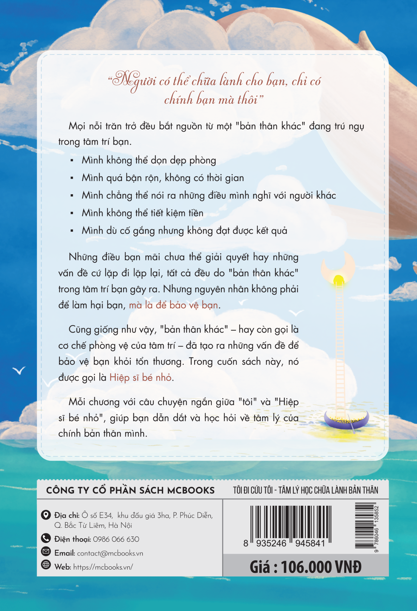 Với thông điệp đầy xúc động: “Người có thể chữa lành cho bạn, chỉ có chính bạn mà thôi”, tác phẩm dẫn dắt người đọc bước vào thế giới tâm lý nội tại, đối thoại với những “Hiệp sĩ bé nhỏ” – phần cơ chế phòng vệ đang trú ngụ trong mỗi người. Từ đó, chúng ta học cách hiểu, chấp nhận và cùng phần “bản thân khác” ấy tiến về phía ánh sáng.