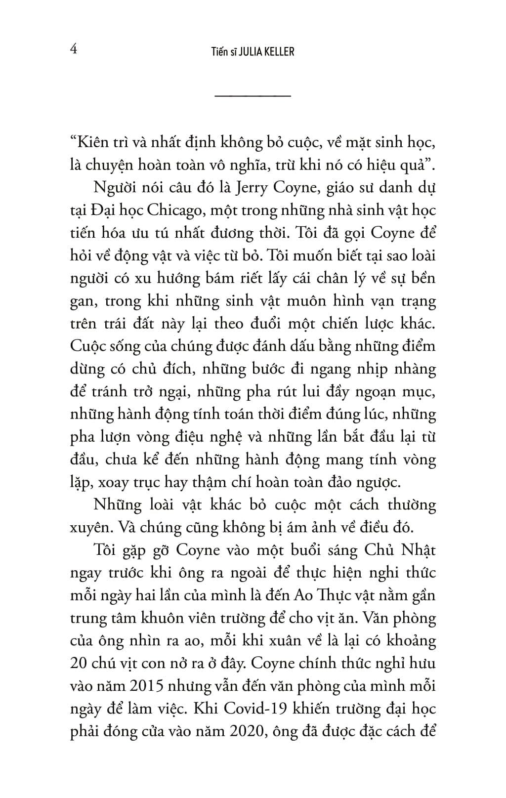 Simone Biles đã bỏ thi Olympics. Hoàng tử Harry và Meghan Markle rời bỏ Hoàng gia Anh. Hàng triệu người đã bỏ việc để tìm kiếm hạnh phúc và tự định nghĩa thành công. Đó phải chăng là một sai lầm? Julia Keller – một nhà báo đoạt giải Pulitzer – không nghĩ như vậy. Thậm chí, rất có thể việc bỏ cuộc sẽ cứu vãn cuộc đời bạn.