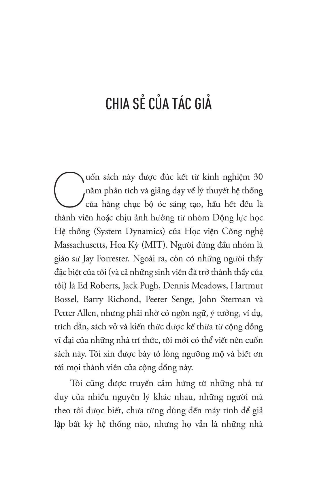 Cuốn sách được đúc rút từ 30 năm kinh nghiệm phân tích và giảng dạy về lý thuyết hệ thống của hàng chục bộ óc sáng tạo, hầu hết đều là thành viên hoặc chịu ảnh hưởng từ nhóm Động lực học Hệ thống của Học viên Công nghệ Massachusetts.
