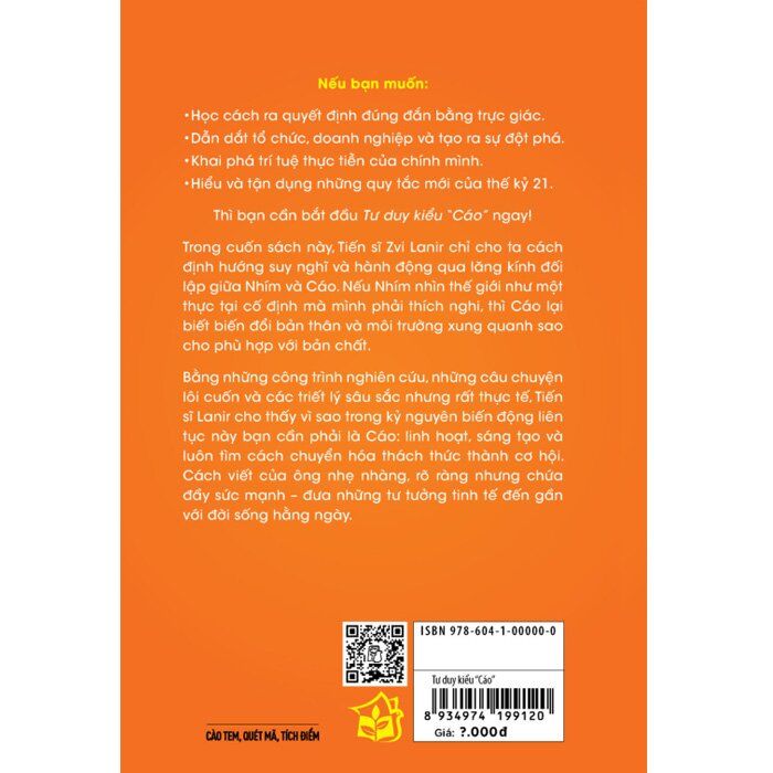 Bằng những công trình nghiên cứu, những câu chuyện lôi cuốn và các triết lý sâu sắc nhưng rất thực tế, Tiến sĩ Lanir cho thấy vì sao trong kỷ nguyên biến động liên tục này bạn cần phải là Cáo: linh hoạt, sáng tạo và luôn tìm cách chuyển hóa thách thức thành cơ hội. Cách viết của ông nhẹ nhàng, rõ ràng nhưng chứa đầy sức mạnh – đưa những tư tưởng tinh tế đến gần với đời sống hằng ngày.