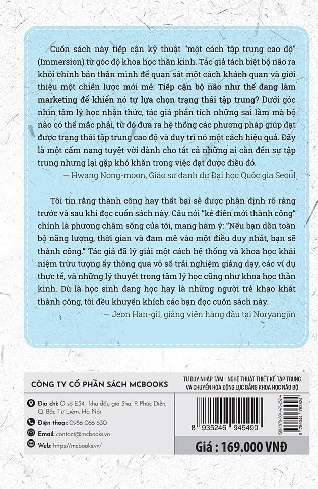 Cuốn “Tư duy nhập tâm” là cẩm nang giúp bạn rèn luyện sự tập trung và duy trì động lực bền vững bằng khoa học não bộ. Qua những hướng dẫn thực tiễn, cuốn sách giúp bạn làm việc sâu, sống trọn vẹn và chạm tới trạng thái “nhập tâm” trong từng hành động.