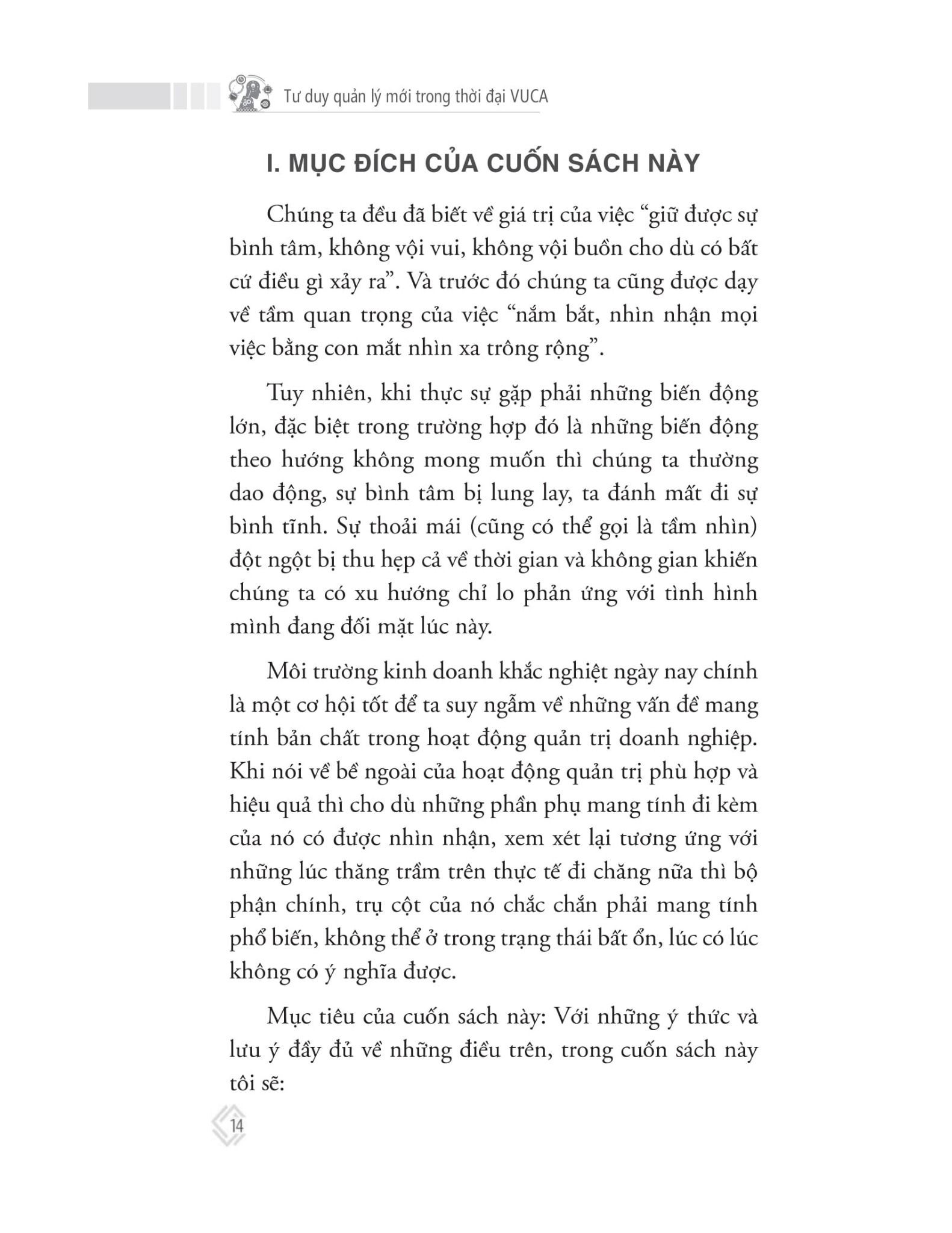 “Tư duy quản lý mới trong thời đại VUCA”cung cấp những dữ liệu thực chứng cụ thể, đưa ra những căn cứ mang tính lý luận cũng như những gợi ý mang tính thực tiễn, nhằm dẫn dắt khả năng tư duy quản lý của các cá nhân.