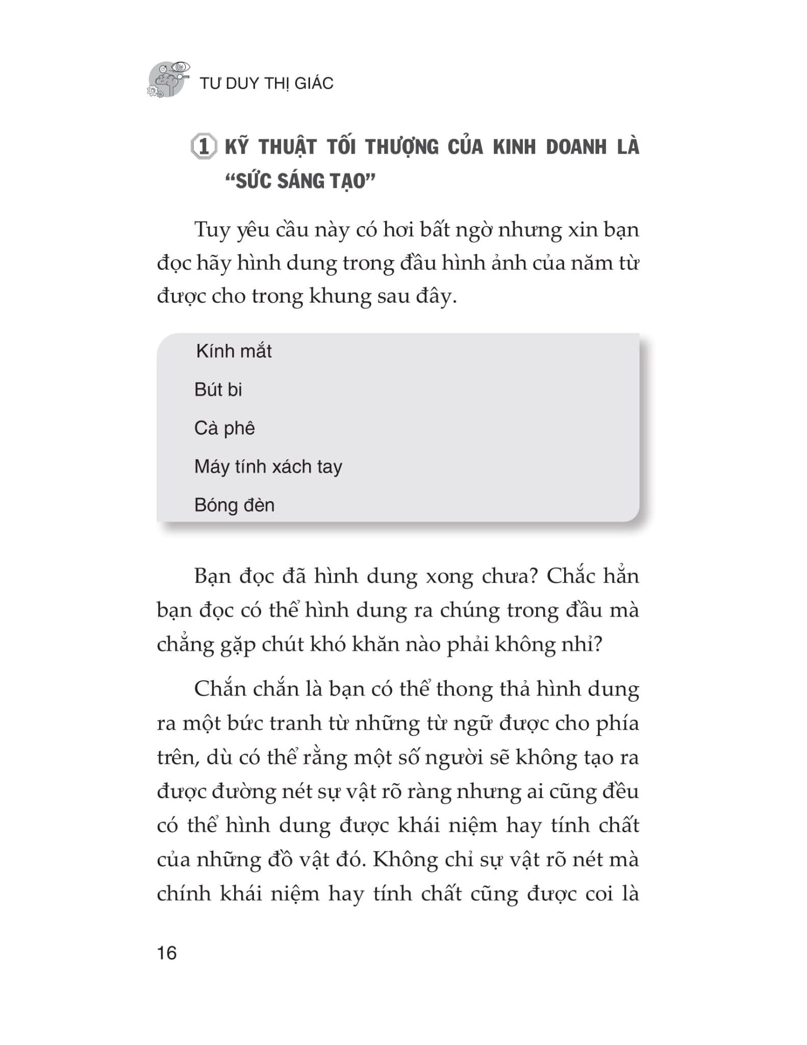 - Phần sau giới thiệu cụ thể các phương pháp luyện tập tư duy thị giác, từ việc ghi chú, đọc hiểu, đến việc luyện tập chuẩn bị cho thuyết trình hay tăng cường sự tập trung trong các bối cảnh khác nhau.