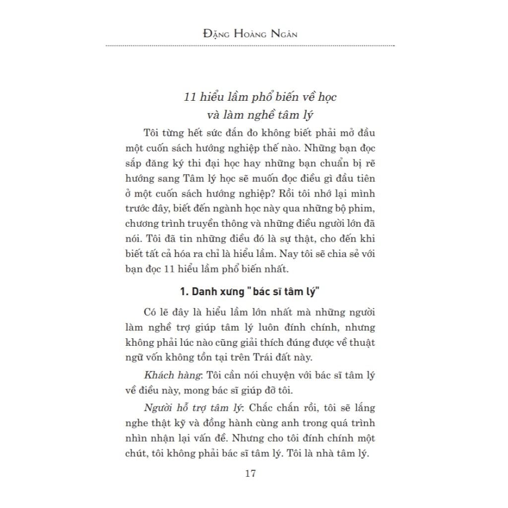 - Mở đầu: Giải thích 11 hiểu lầm phổ biến về học và làm nghề tâm lý