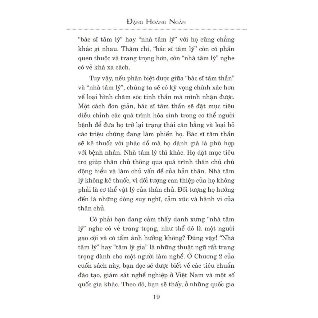 Được viết bởi tác giả Đặng Hoàng Ngân - một chuyên gia, Tiến sĩ Tâm lý học với nhiều năm kinh nghiệm - cuốn sách “Từng bước nhập môn hành nghề tâm lý” sẽ mang đến cho bạn đọc một cái nhìn toàn diện về Tâm lý học, cung cấp những kiến thức cần thiết trên hành trình theo đuổi lĩnh vực nghiên cứu cũng như thực hành nghề tâm lý.