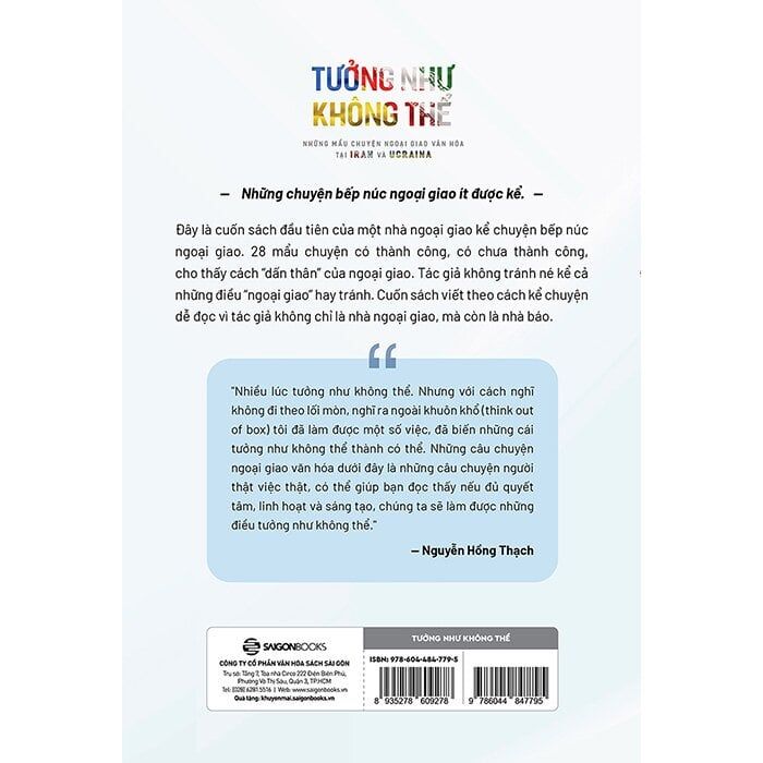 Cuốn sách “Tưởng như không thể” gồm 24 mẩu chuyện thú vị về cách đại sứ dùng thơ ca, điện ảnh, âm nhạc, ẩm thực… để “bắc cầu” mối quan hệ giữa Việt Nam và hai đất nước này.