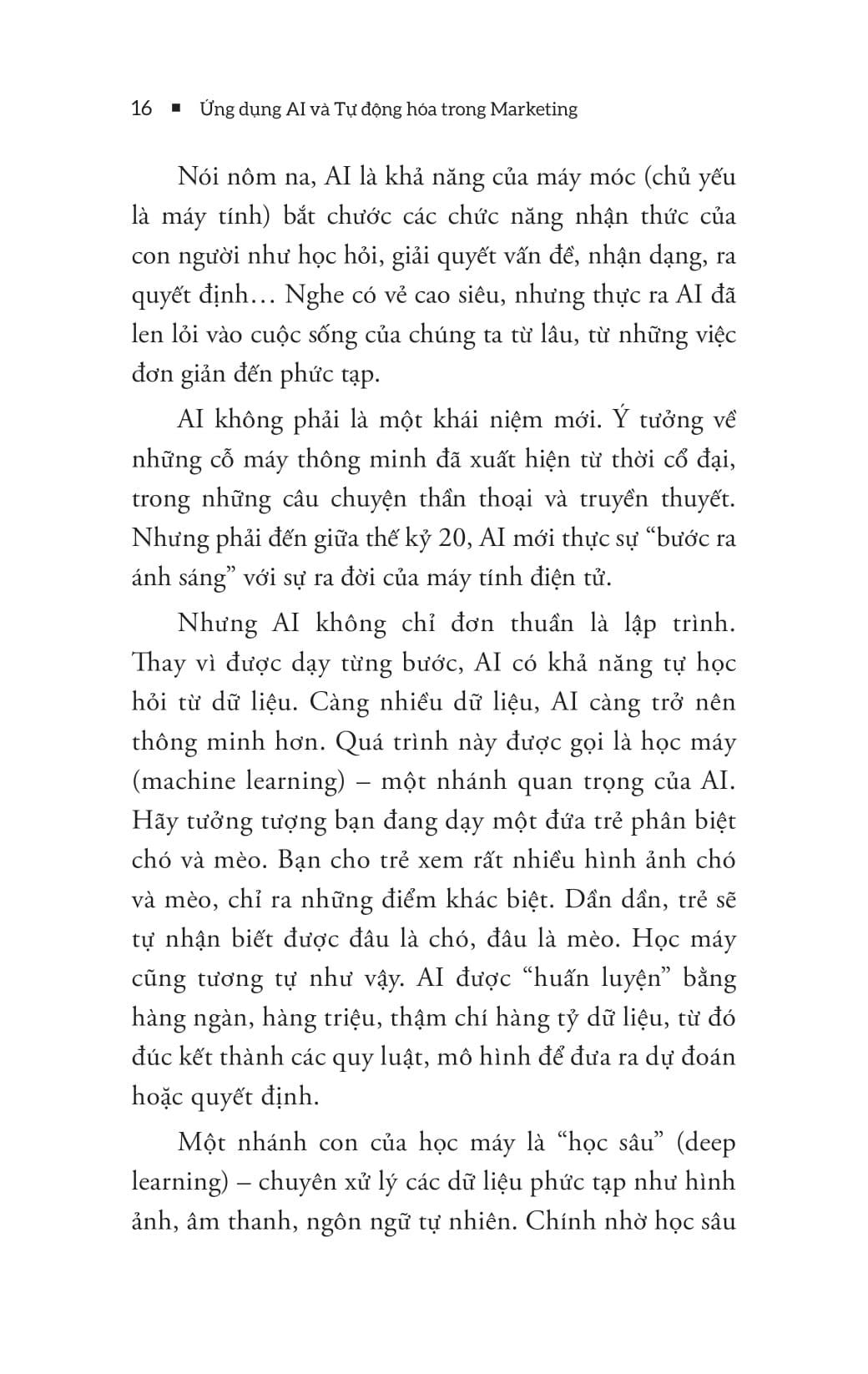 Cuốn sách sẽ giới thiệu một cách ngắn gọn và trực diện với bạn đọc cách để ứng dụng thành công AI và tự động hóa trong lĩnh vực marketing, từ lý thuyết tới thực hành.