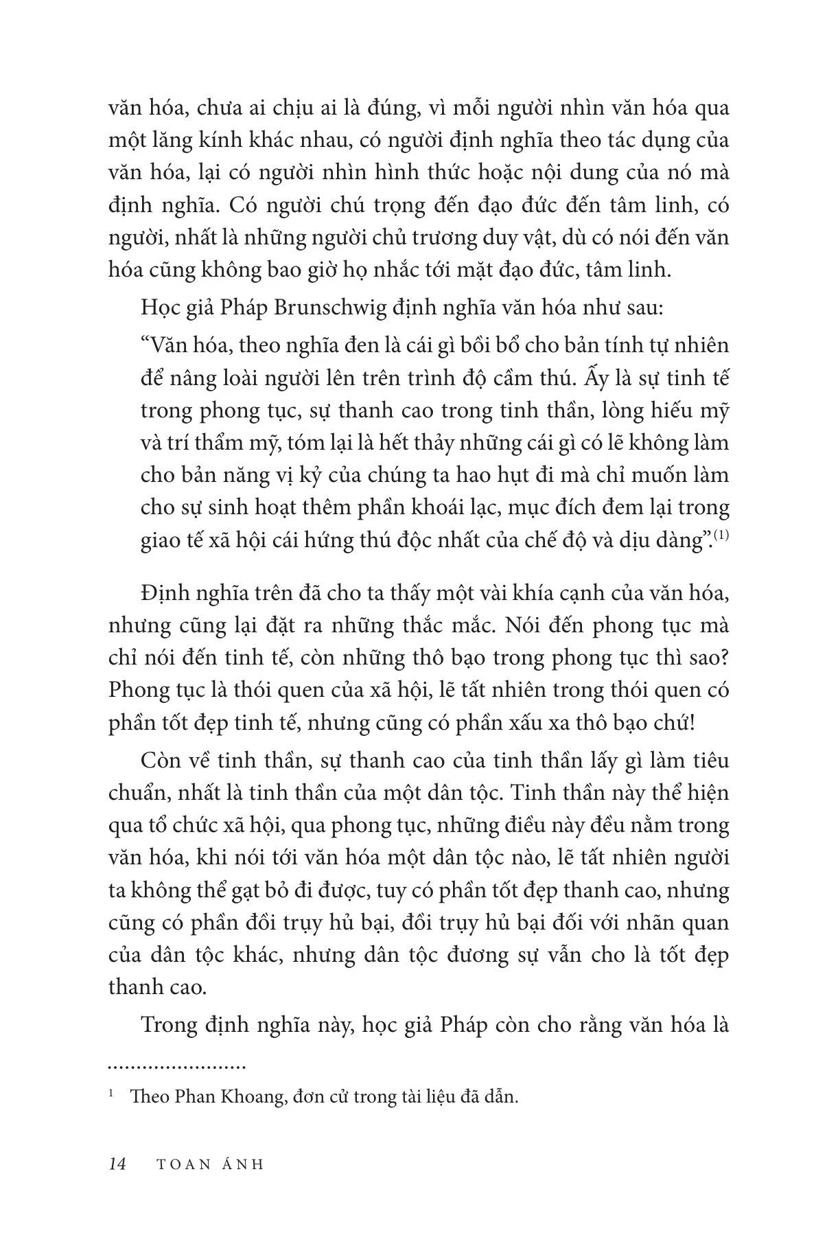 Tác phẩm Văn hóa Việt Nam – những nét đại cương của tác giả Toan Ánh đã ghi chép, liệt kê và tổng kết những nét chính yếu của văn hóa Việt Nam, những điều cốt tử đã giúp văn hóa nước nhà trường tồn và phát triển rực rỡ.