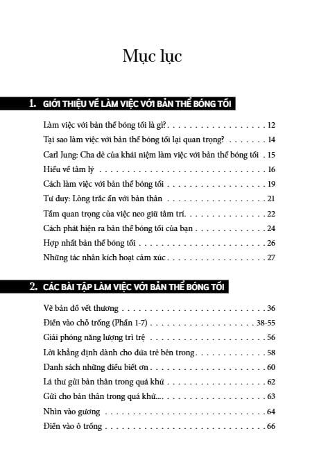 Điểm làm nên sức cuốn hút đặc biệt của Vượt Qua Bóng Tối nằm ở hệ thống bài tập trị liệu được thiết kế xuyên suốt, giúp người đọc không chỉ hiểu mà còn thật sự trải nghiệm quá trình làm việc với bản thể bóng tối. Từ loạt bài “Điền vào chỗ trống” chạm đến tầng vô thức, thực hành “Nhìn vào gương” để đối diện phần bị che giấu, kỹ thuật EFT giải phóng cảm xúc, các bài thở và thiền quán tưởng cho đến những chủ đề sâu hơn như “Vẽ bản đồ vết thương”, “Khám phá đứa trẻ bên trong”, “Khám phá nỗi sợ”, hay các trang “Theo dõi tác nhân kích hoạt” – mỗi bài tập đều gắn kết chặt chẽ với tiến trình chuyển hóa nội tâm. Chúng hoạt động như những nhịp thở sâu, giúp người đọc từng bước tháo gỡ cảm xúc, quan sát chính mình và chữa lành từ bên trong.
