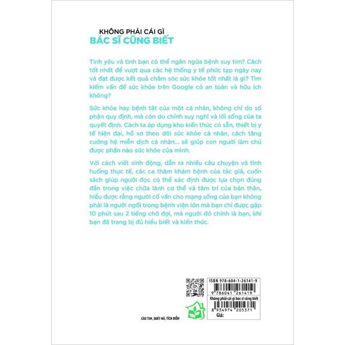 Với cách viết sinh động, dẫn ra nhiều câu chuyện và tình huống thực tế, các ca thăm khám bệnh của tác giả, cuốn sách giúp người đọc có thể xác định được lựa chọn đúng đắn trong việc chữa lành cơ thể và tâm trí của bản thân, hiểu được rằng người cố vấn cho mạng sống của bạn không phải là người ngồi trong bệnh viện lớn mà bạn chỉ được gặp 10 phút sau 2 tiếng chờ đợi, mà người đó chính là bạn, khi bạn đã trang bị đủ hiểu biết và kiến thức.
