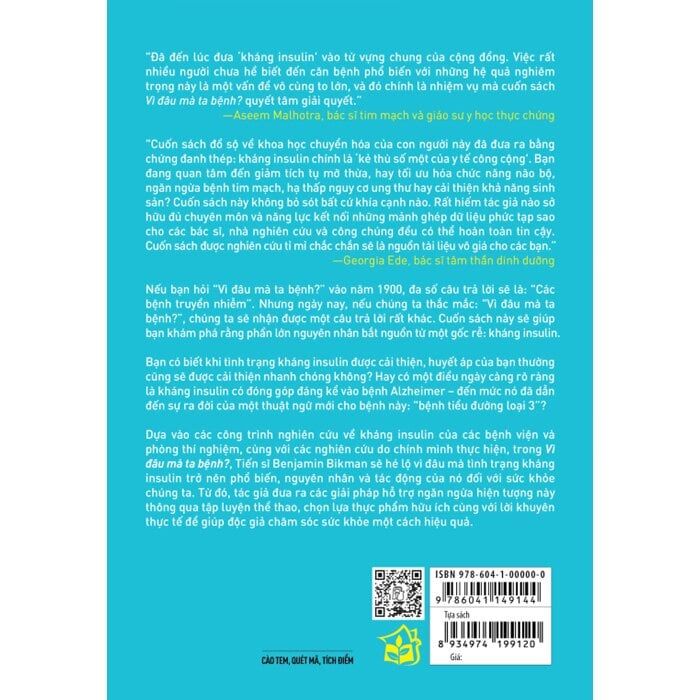 Kháng insulin là tình trạng sức khỏe có thể gặp ở nhiều người, bao gồm cả người lớn và trẻ em và thường được biết đến là nguyên nhân dẫn đến bệnh tiểu đường. Tuy nhiên, tình trạng kháng insulin thực chất còn là căn nguyên dẫn đến các bệnh mãn tính khác như ung thư, bệnh tim, Alzheimer, v.v.. Số lượng người mắc phải hiện tượng này ngày càng gia tăng ở nhiều quốc gia, vì thế kháng insulin đang trở thành một vấn đề sức khỏe phổ biến hàng đầu hiện nay trên thế giới. Dựa vào các công trình nghiên cứu về kháng insulin của các bệnh viện và phòng thí nghiệm, cùng với các nghiên cứu của do chính mình thực hiện, trong “Vì đâu mà ta bệnh?”, TS. Benjamin Bikman sẽ hé lộ vì đâu mà tình trạng kháng insulin trở nên phổ biến, nguyên nhân và tác động của nó đối với sức khỏe chúng ta. Từ đó, tác giả đưa ra các giải pháp hỗ trợ ngăn ngừa hiện tượng này thông qua tập luyện thể thao, chọn lựa thực phẩm hữu ích cùng với lời khuyên thực tế để giúp độc giả chăm sóc sức khỏe một cách hiệu quả.