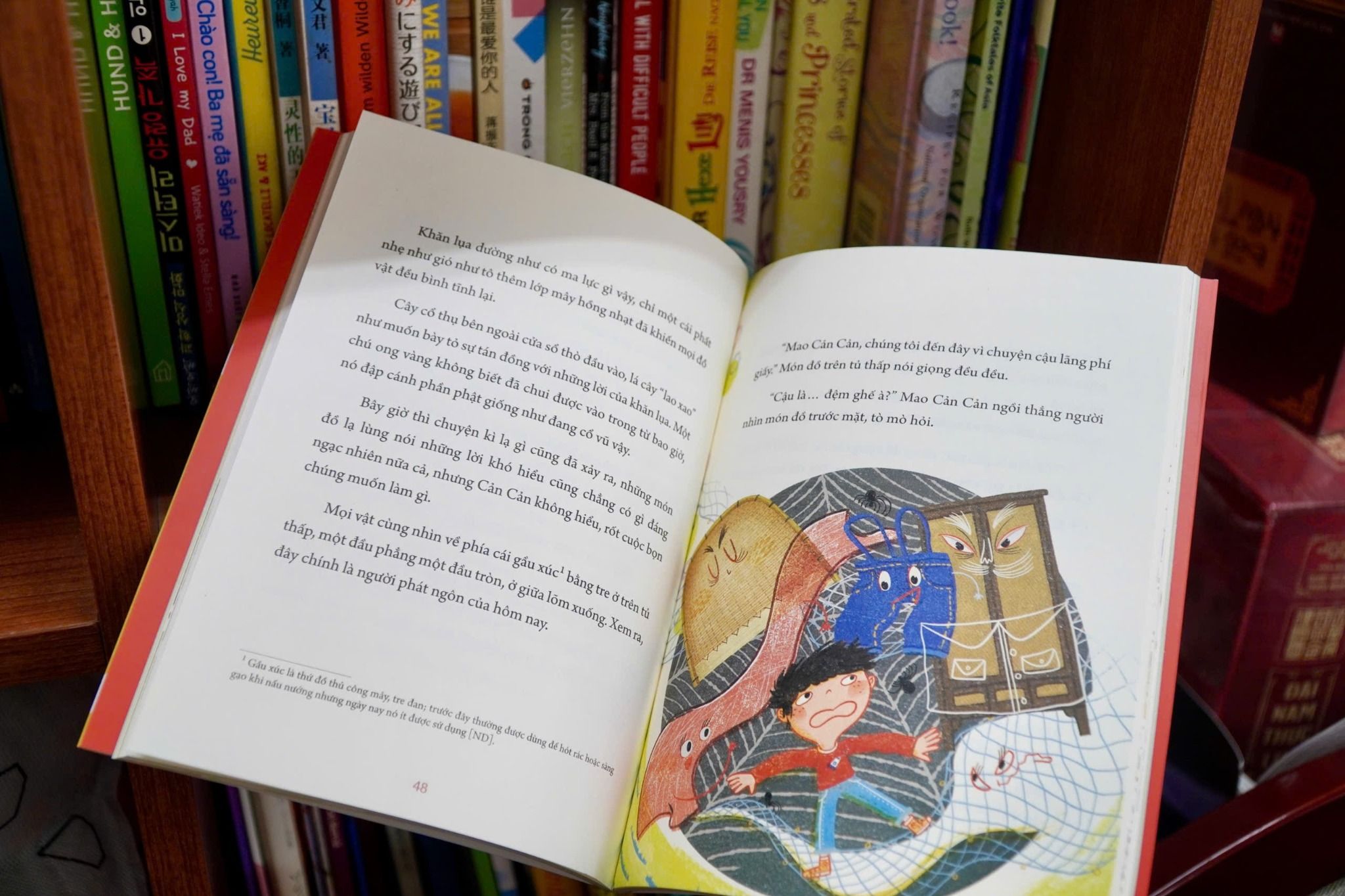 “Cản Cản dùng hết sức lực của mình để cầm chắc tấm vé nhưng chẳng biết tại sao, tấm vé trong tay cậu giống như có sức sống vậy, nó ra sức vùng vẫy thoát khỏi những ngón tay của Cản Cản. Tấm vé giống như đang biểu diễn xiếc, trước tiên nó lộn nhào hai cái sang bên, sau đó lại lộn thêm hai cái ra phía sau, sau cùng ngông nghênh cưỡi gió bay vút lên trời cao.